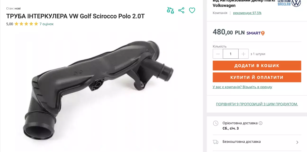 По парт номерам там только этот Audi OE 1K0145770P трубка шланг шнур інтеркулера остальное просто на Алегро взято по виду и отзывам.