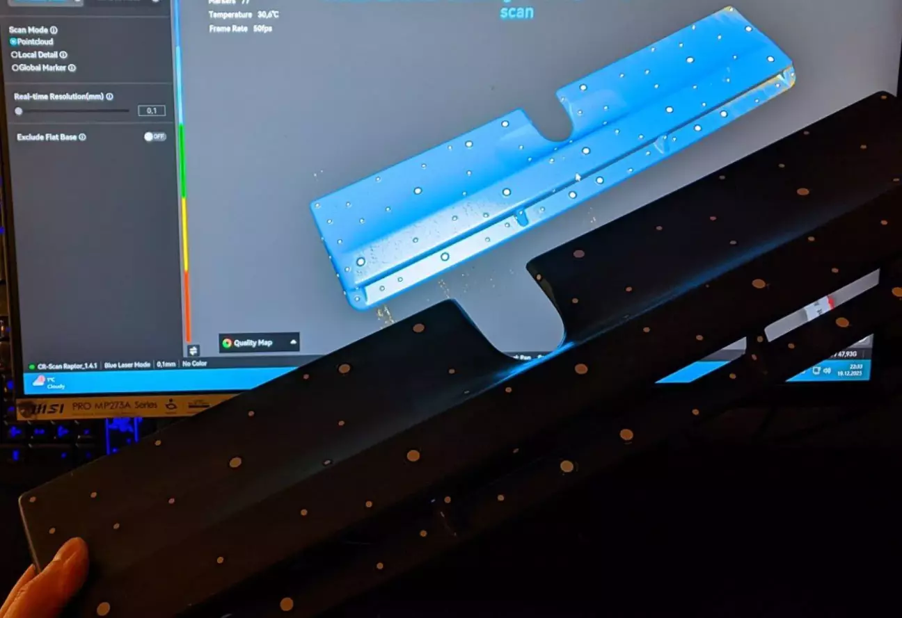 Сканувати було досить легко: Деталь простої форми і невеликих розмірів, але пласка, і робилася з двох різних сканів. З обробкою доведеться трошки повозитись, типова ситуація для реверс інжинірингу.