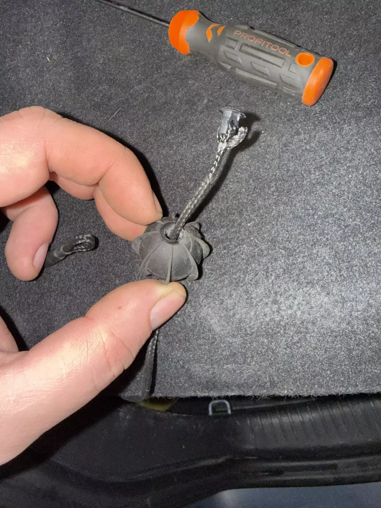 Но пипки креплений были обломаны, а в комплекте с шнурками шли ремонтные клипсы, где отсверливаешь старые пипки, которые влиты в пластик, и ставишь эти клипсы. Конечно можно было вкрутить по саморезу, но если есть возможность, то почему не сделать по человечески.