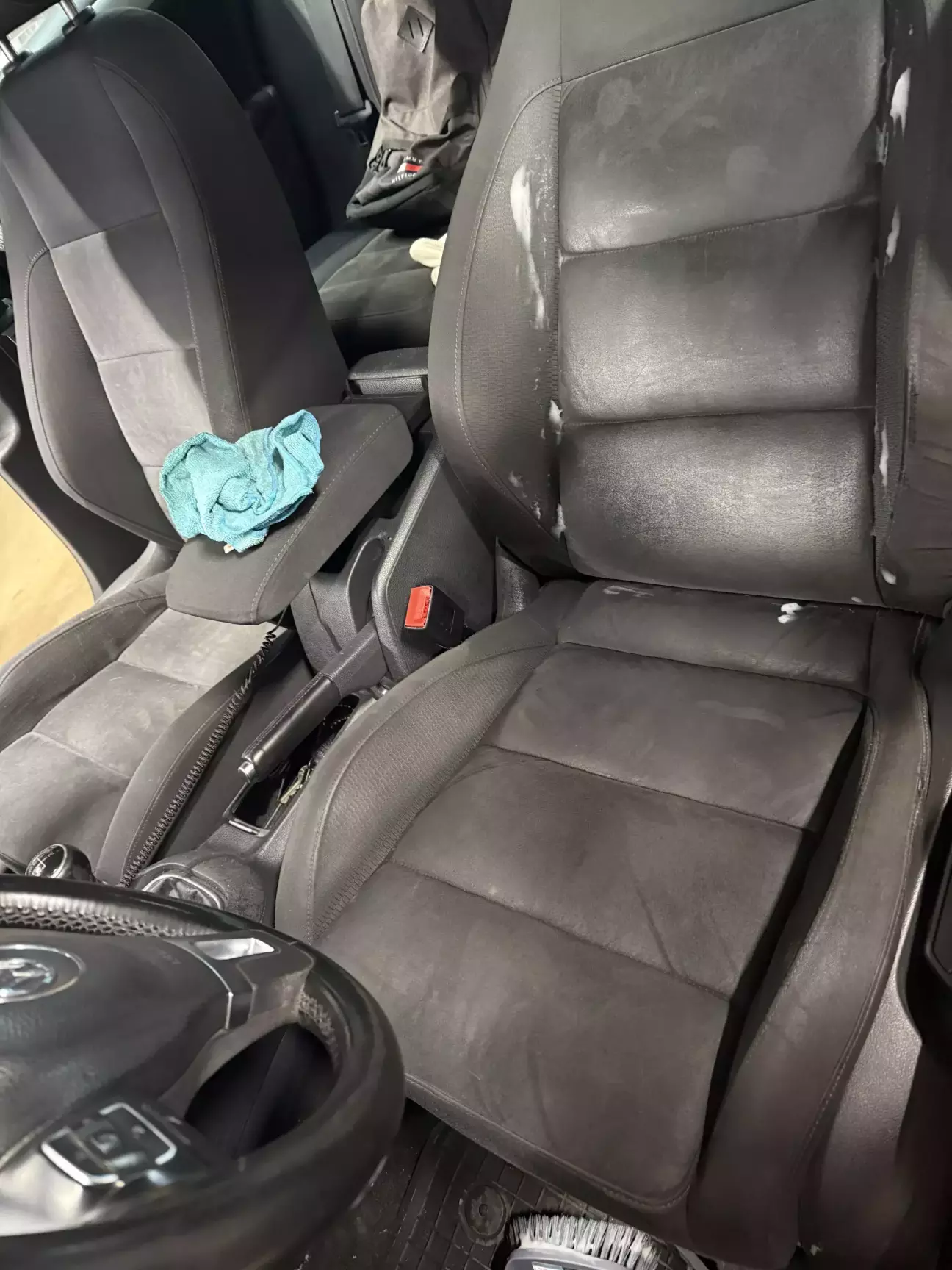 На след день занялся уже своим, где алькантара стала кожей. Все то же самое, только потрачено в 2 раза больше химии и времени, около 5 часов наверное.