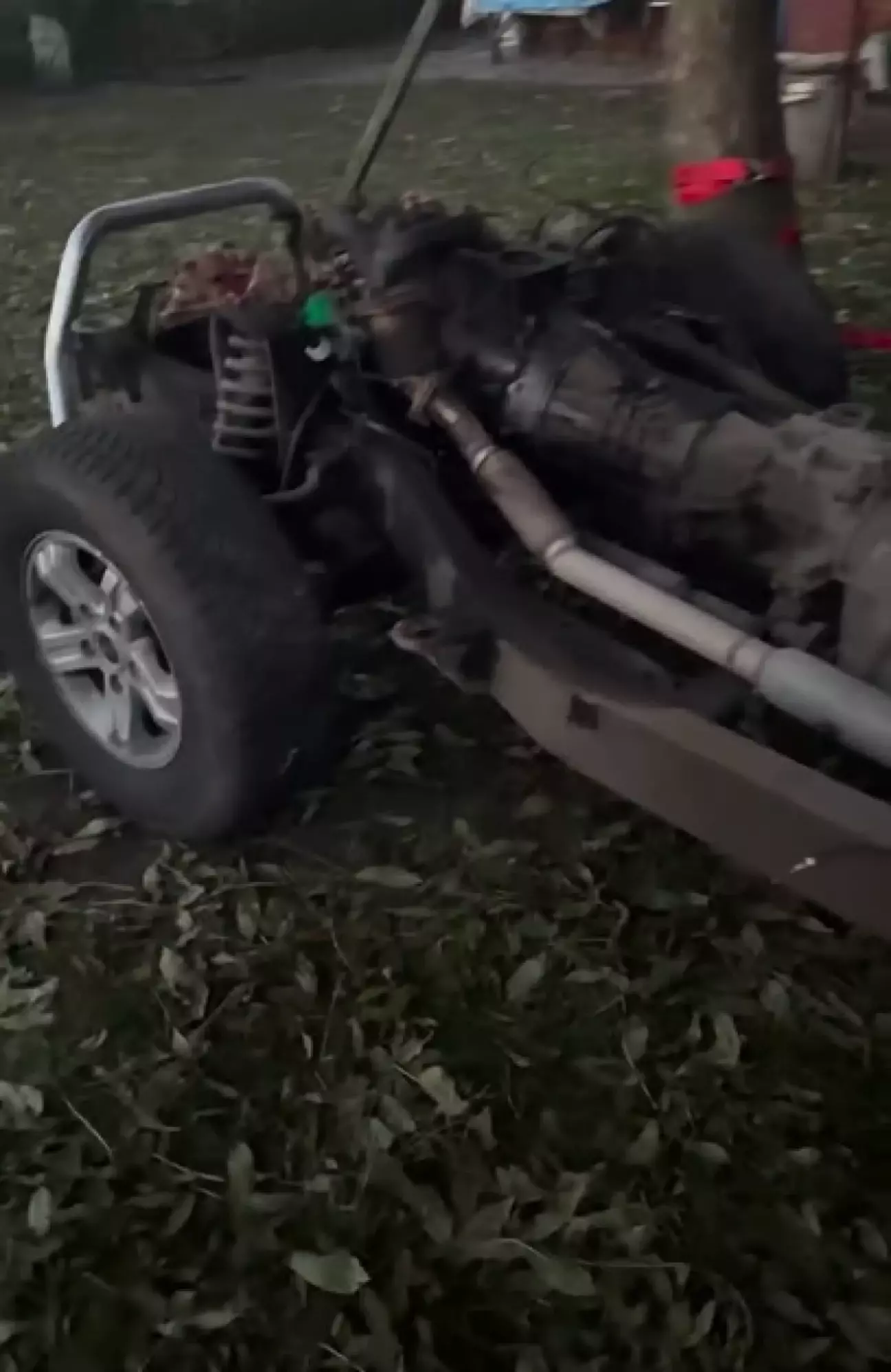 Спочатку поставив на тверде раму. Далі по трохи піднімав , підставляючи між рамою і кузовом проставки. Після того , як підняв, завів мід передні і задні арки 2 стовпчики з акації і поставив їх на 4 бочки.