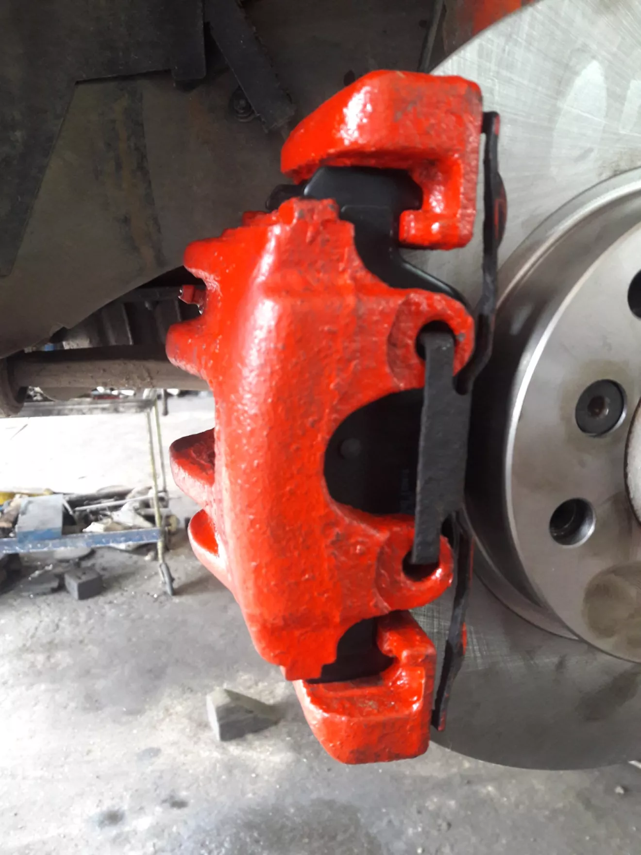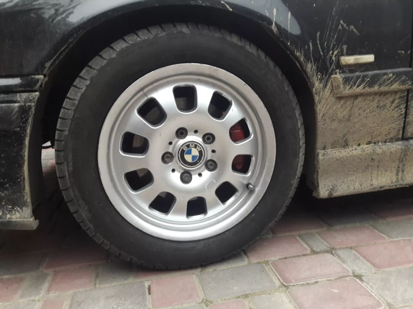 Взамен старых, невентилируемых тормозных дисков, были установлены новые с вентиляцией Remsa и колодки Remsa по кругу, суппорта от Е46. Соответственно колёсные диски на 15 не становятся.