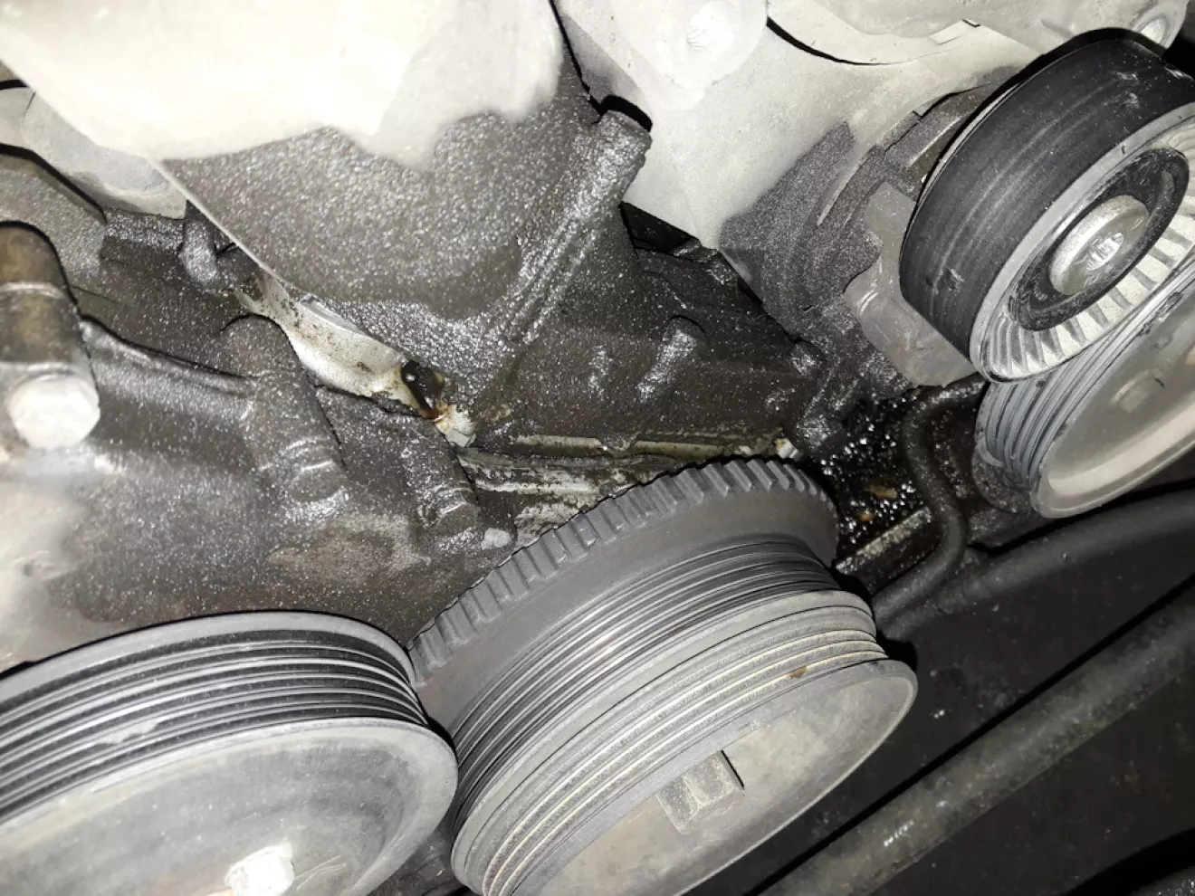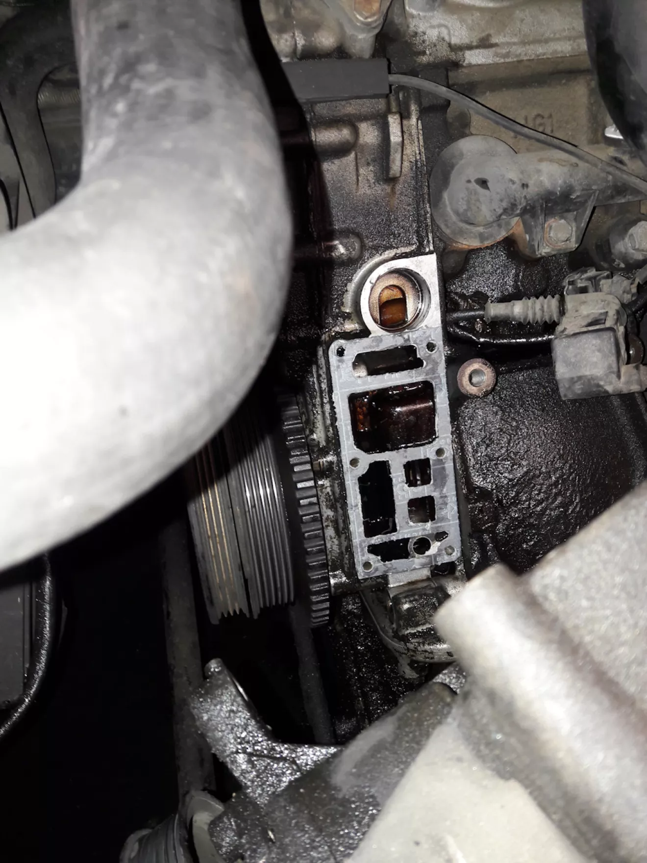 После снятия корпуса, там была замечена небольшая трубка, как раз из под которой и текло масло, там на ней два сальника(ориг номер 11421709513).