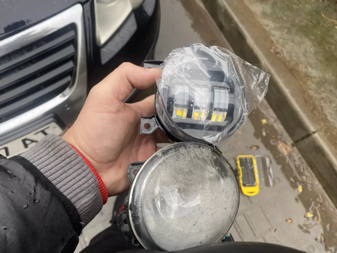 Летом купил себе новые ПТФ не помню что за фирма но Китай тк на старых уже надо менять стёкла, из них только одна была оригинал и другая тоже не понятного происхождения и в ней выгорел отражатель. Так вот установил я новые, и вуаля одна поездка 500км потом не пользовался, а сейчас заметил что потеют, снял их а лампы просто сожгли отражатель до дыр, хотел уже заказать оригинал но тут наткнулся на Led мол для пассата б6, ну вообще супер, все спросил сказали что становится на штатные места, с обманками и HB 4. Получив посылку тут же начал ставить а они вообще не подходят да ещё и под H11, отослал обратно, сказали что ошиблись через 4 мучительных дня 😡, прислали мол под б6, с длиной ножкой, но нет опять все такое же только уже можно посадить на 2 крепления. Вообщем товар обратно не отправлял, изначально хотел их запихнуть в заводские ПТФ сложено но можно, ( но пока нет фена решил поставить их так) купил переходник на Н11, следовательно hb4 отрезал. И все работает, результатом их света очень доволен, но дают ошибки, купил обманки на 50w6 ошибка ушла но конденсатор очень греется, позже буду искать какую-то обманку пока радуюсь сету и ошибке на приборке.