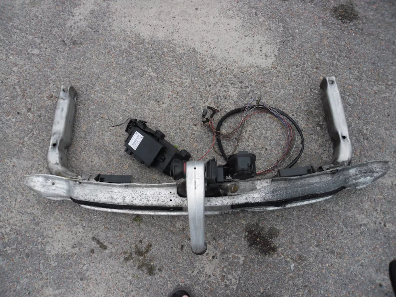 Давно хотел оригинальное сцепное, так как идет стройка дома, да и по работе бывает надо что то перевести постоянно.Начались поиски но ни как не мог найти в Украине, сколько не искал .Зато нашел в Польше цена подошла вот и купил.Лежало пол года руки до него доходили что бы поставить.Нашелся все таки свободный, солнечный день и я приступил к установке.Снимаю боковые обшивки, добрался до бампера, снял его и брызговики.Потом усилитель который держится на четырех болтах.Поставил сцепное, закрепил на два болта, а отверстия под другие два болта были заглушены заводским скотчем .Cнял скотч вставил болты, а снизу поставил две гайки с нержавейки.Завел проводку через резиновую заглушку с левой стороны, в нижней юбке бампера сделал вырез, под шаровую головку и розетку.На этом моя работа закончилась.Проводку поехал к другу он подключил, прописал где надо и все работает .На этом все.