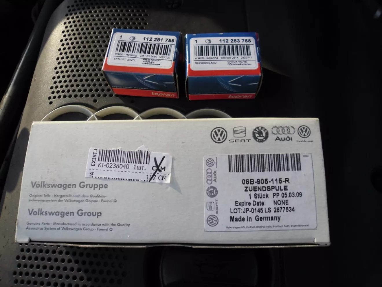 Все привет .Хочу рассказать, что машина начала не много вредничать, дергаться если жмешь газ в пол, если жмешь плавно на газ набирает обороты нормально, мотор не дергаться все ок и еще на холостом ходу когда машину завел, прогрелась гуляют не много обороты.Что же нужно искать причину, в чем проблема .Позвонил другу, под ехал я, он подключил компьютер почитали, показал две ошибки, первая пропуски в третьем цилиндре и вторая дословно не помню но суть такова что где то уходит воздух.Сказал причину по первой проблеме это катушка по второй клапан воздушный.Заказал я на exziste катушку по оригиналу номер 06B905115R и клапан воздушный номер 035103245А взял topran и еще заодно клапан обратный номер 058905291К не понятно по какой причине он посыпался (наверно от старости) тоже topran.Пришло, поставил, испытал все супер как и раньше, набирает, не троит, обороты не плавают, проверили чуть позже на ошибки их нет .Клапан старый который снял продувался в обе стороны хотя должен только в одну, вот вам и причины, всем спасибо за внимание)))