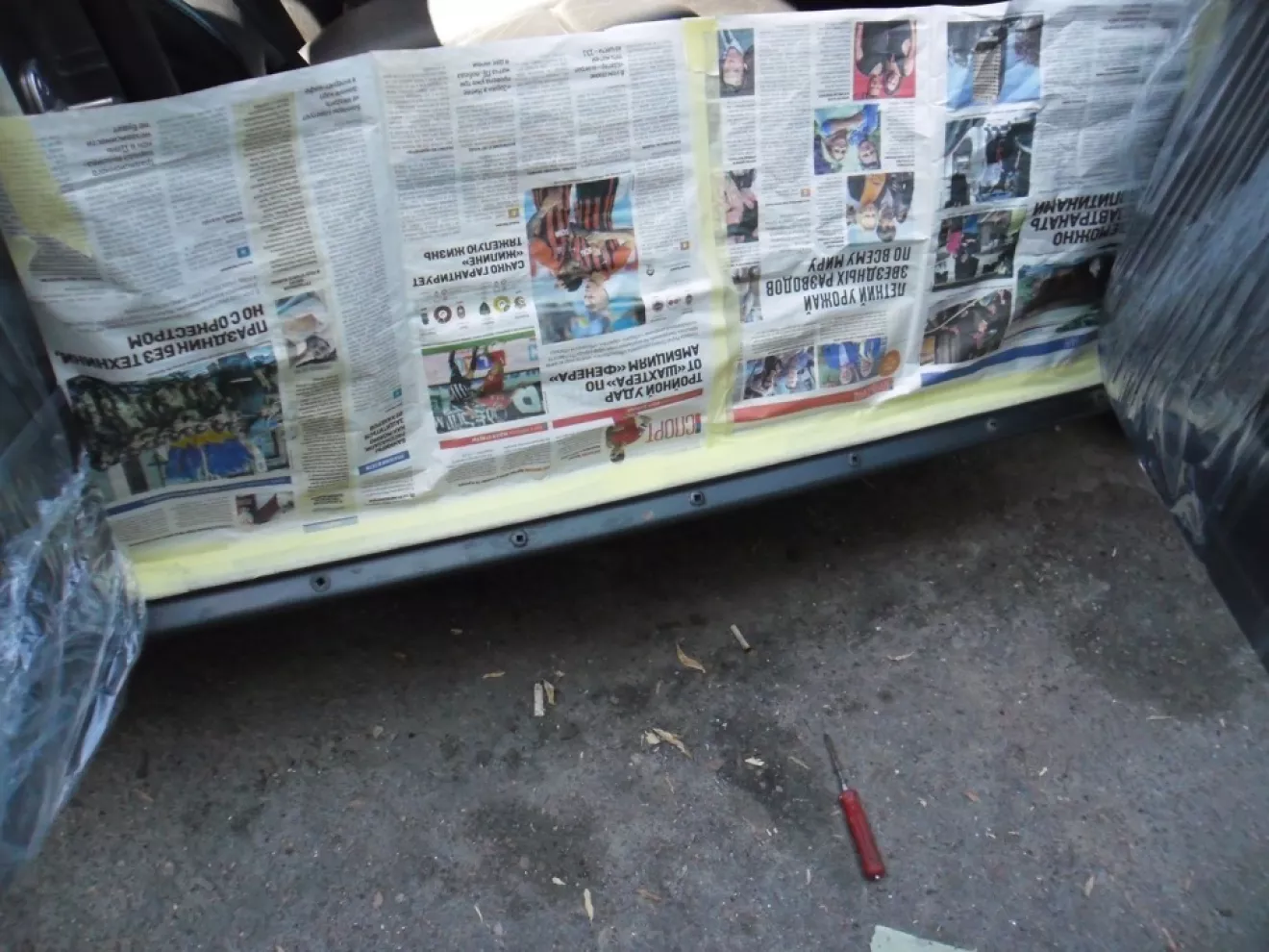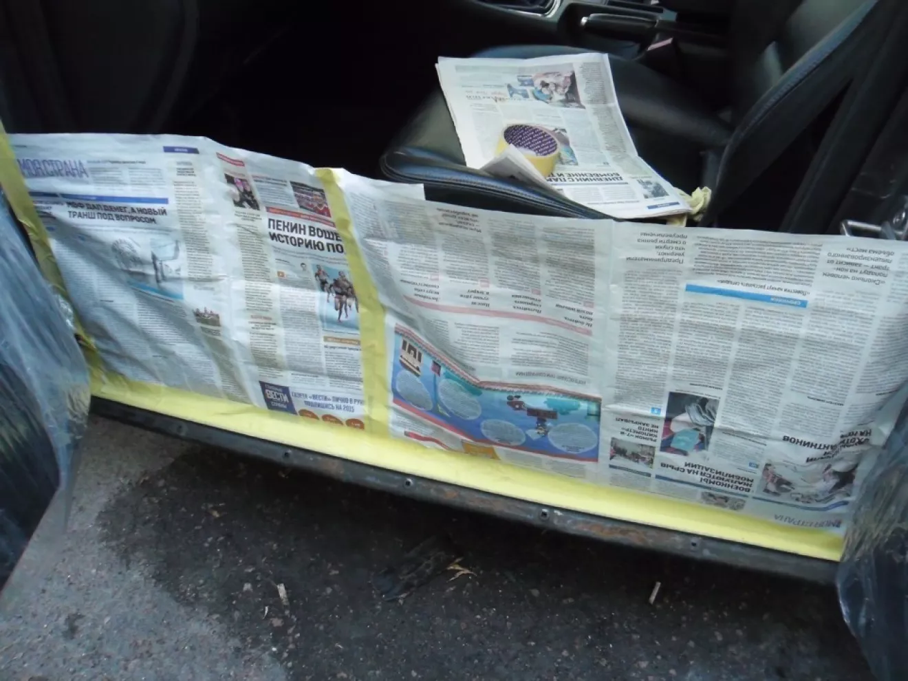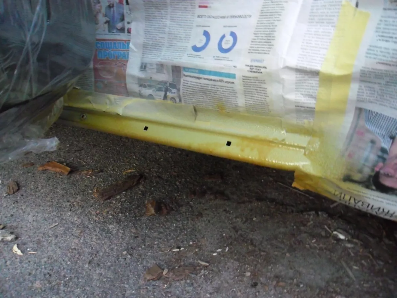 Всем привет.Решил я снять пороги посмотреть как там обстоят дела с лакокрасочным покрытием, пока есть время и желание) .Снял, а там с водительской стороны уже полным ходом орудует ржавчина, а с пассажирской тоже но немного и есть один плюс что ржавчина не вылезла за порог, значить можно покрасить своими силами без маляров .С ездил купил все что надо в этот день.И так перед снятием пластиковой планки с порога я приклеил малярную ленту впритык к этой планке что бы знать точно границу куда нельзя заходить, снял пороги, обклеил проемы и двери обмотал стречем чтобы случайно не покрасить .Счищал ржавчину с водительской стороны часа три, заманался зато есть результат правда забыл сфотографировать .Покрасил собрал все назад результатом доволен, а когда были сняты пороги посмотрел как там днище, там тоже надо будет подкрасить и барашек нанести .