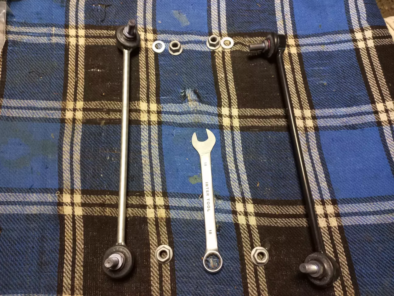 Для заміни стійок стабілізатора потрібен такий "спешл тул" - зточений, тонкий рожковий ключ на 18.