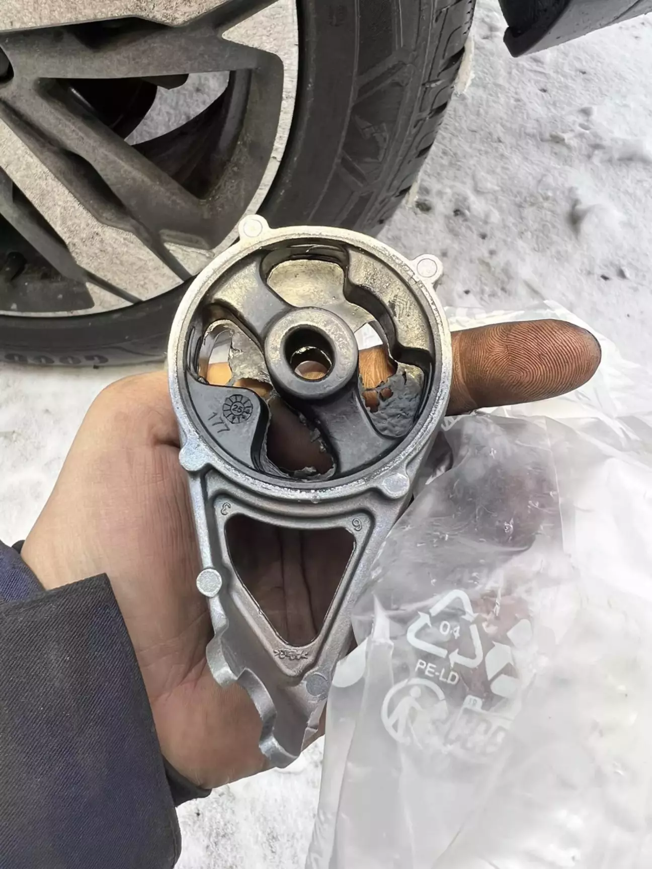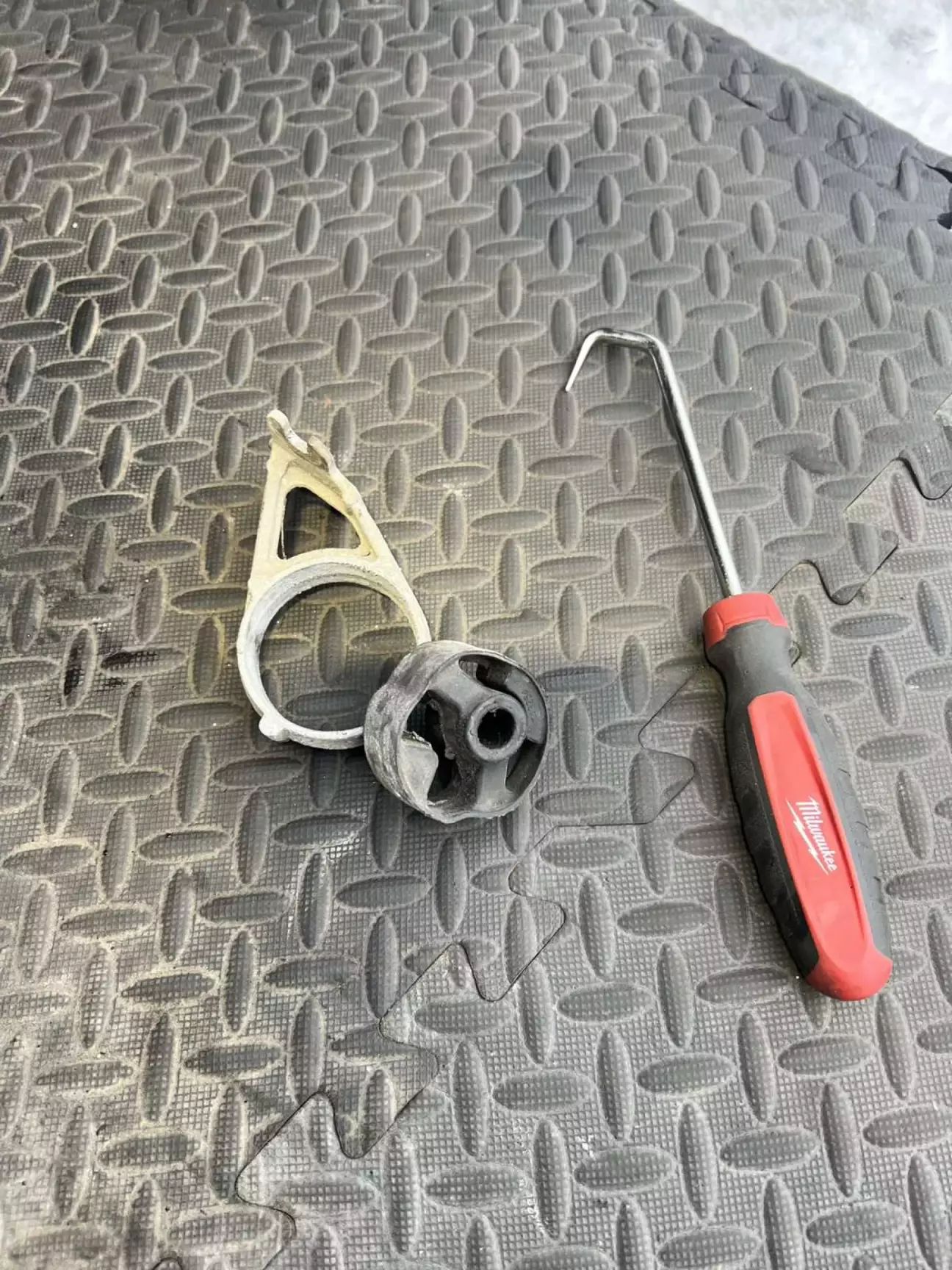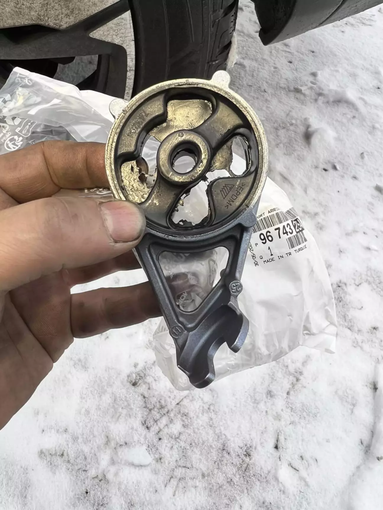 Реально в мене таке враження, що у Франції великий дефіцит штучного каучуку, бо гумо-технічні вироби на даному автомобілі виглядають по дитячому і це стосується не тільки даної опори глушника, а й сайленблоків передніх важелів, подушок двигуна і т.д. От ніби саме на гумі вирішили зекономити.