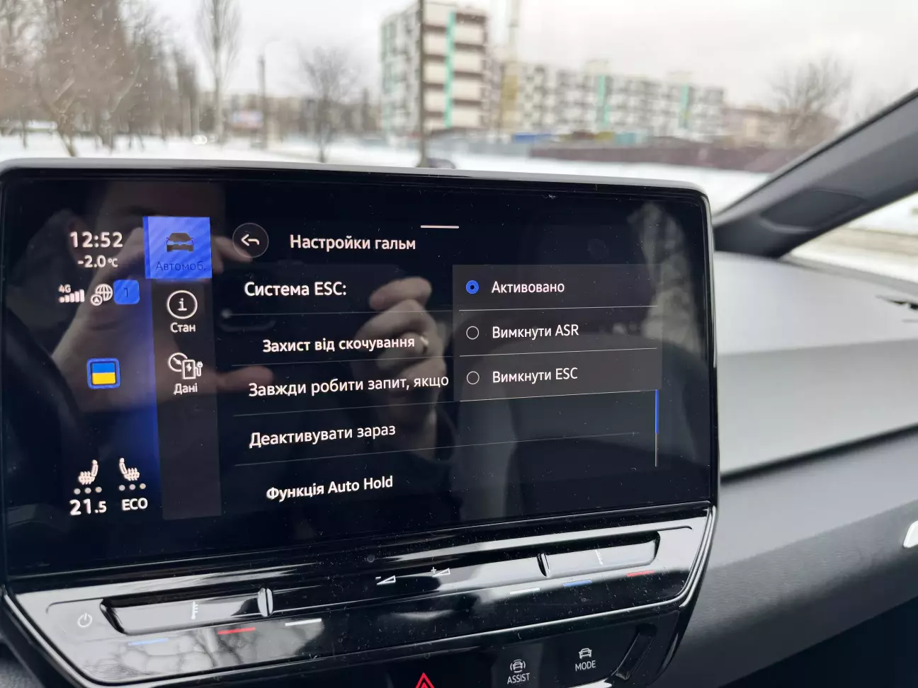 На дворі сніг і я хочу крутити бубликів тому треба відключити стабілізацію.
