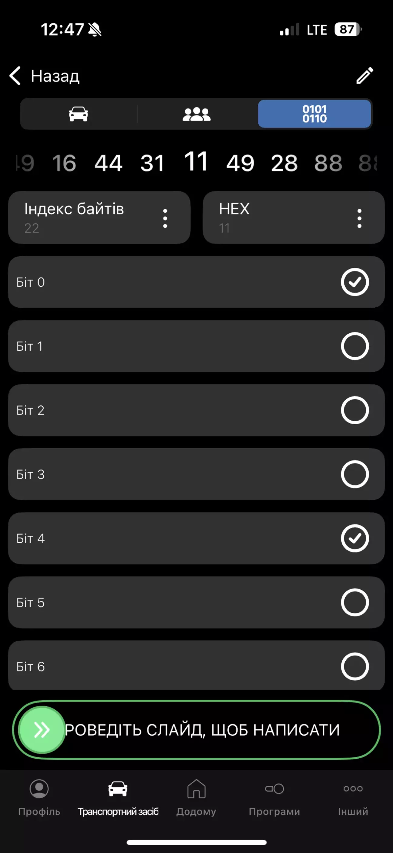 байт 22 встановити hex 81