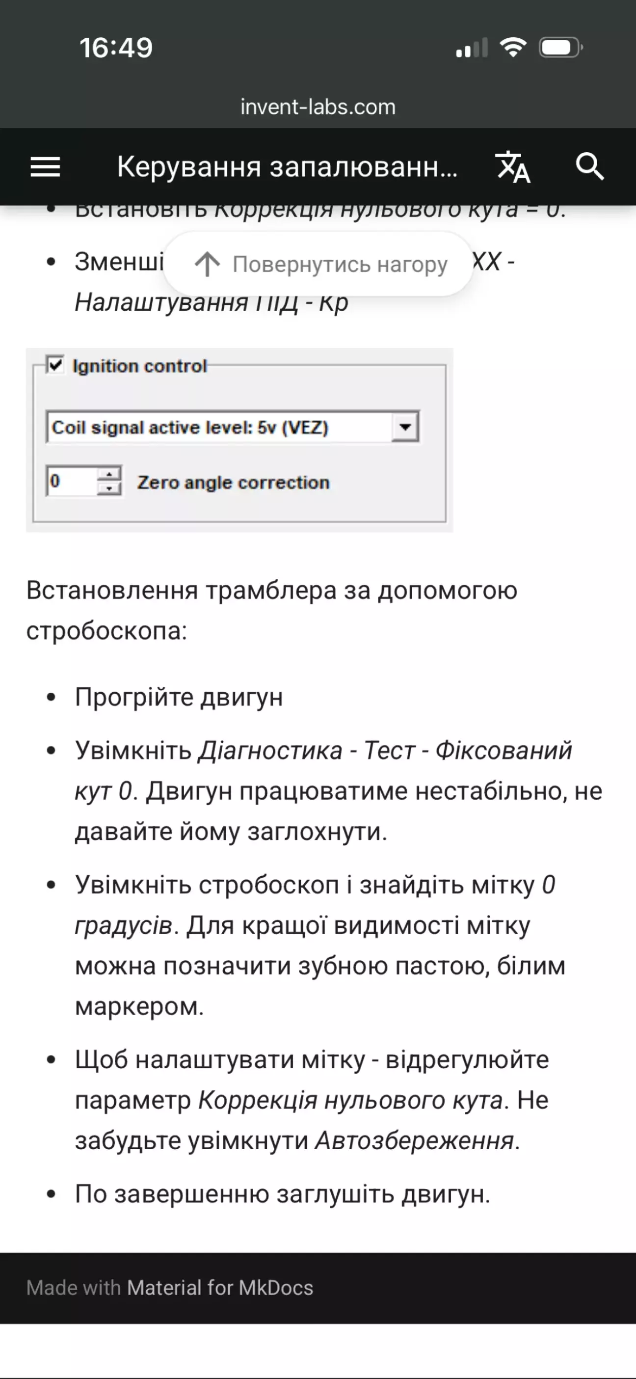 Спочатку я зробив трохи не так . Виставив тромплером нуль на маховику . Суть та сама . Тільки якщо ти крутиш тромплером , для ХХ Інвенту потрібно буде викрутити кут на 15 градусів у плюс , а якщо виставити нуль по мануалу то його треба буде крутит всього декілька градусів . Їздив що так , що так .