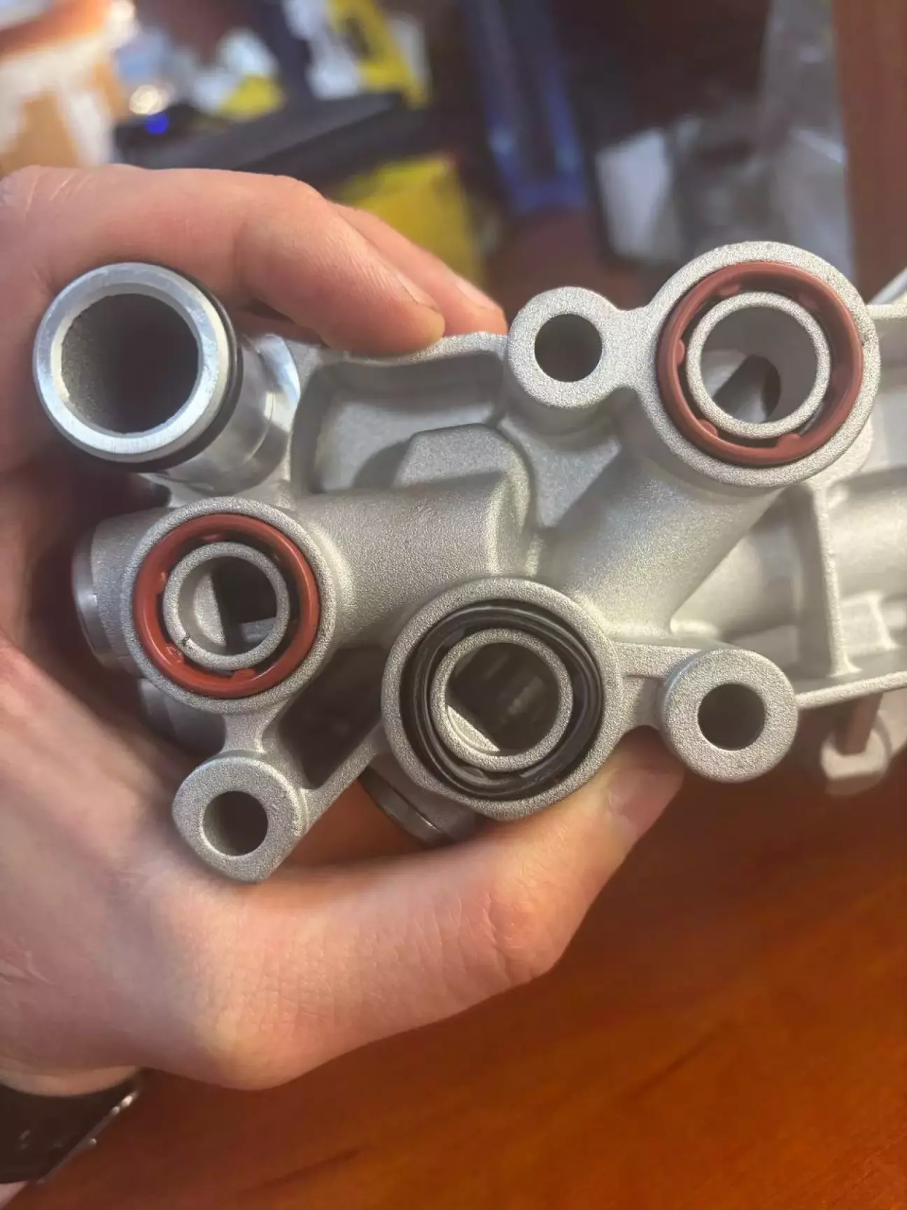 Ось так виглядає мопарівська прокладка (чорна) на теплосі - на відміну від тих що стояли, здається що вони якось невпевнено сидять - так і повинно бути, не звертайте уваги: