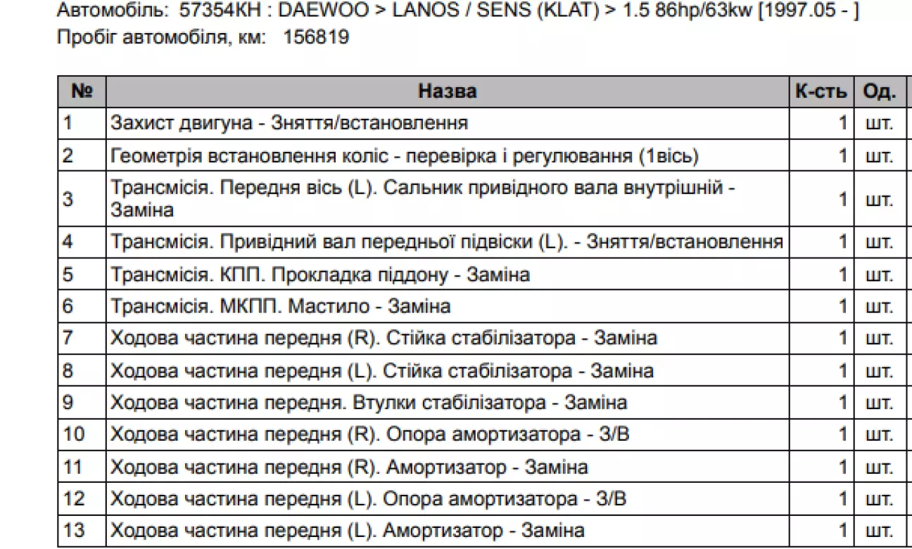 Втулки стабілізатора та сальник півосі. Стійки стабу та масло в КПП були придбані раніше