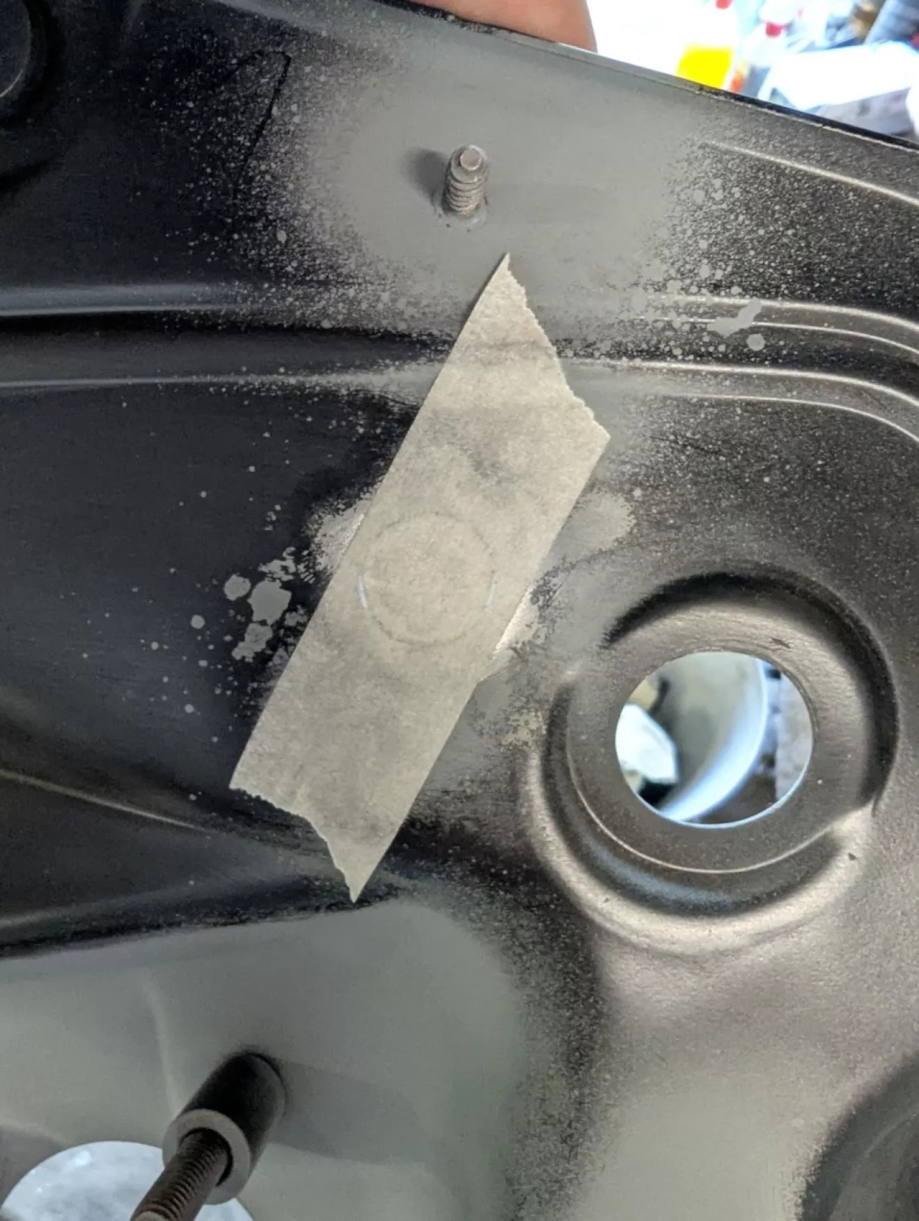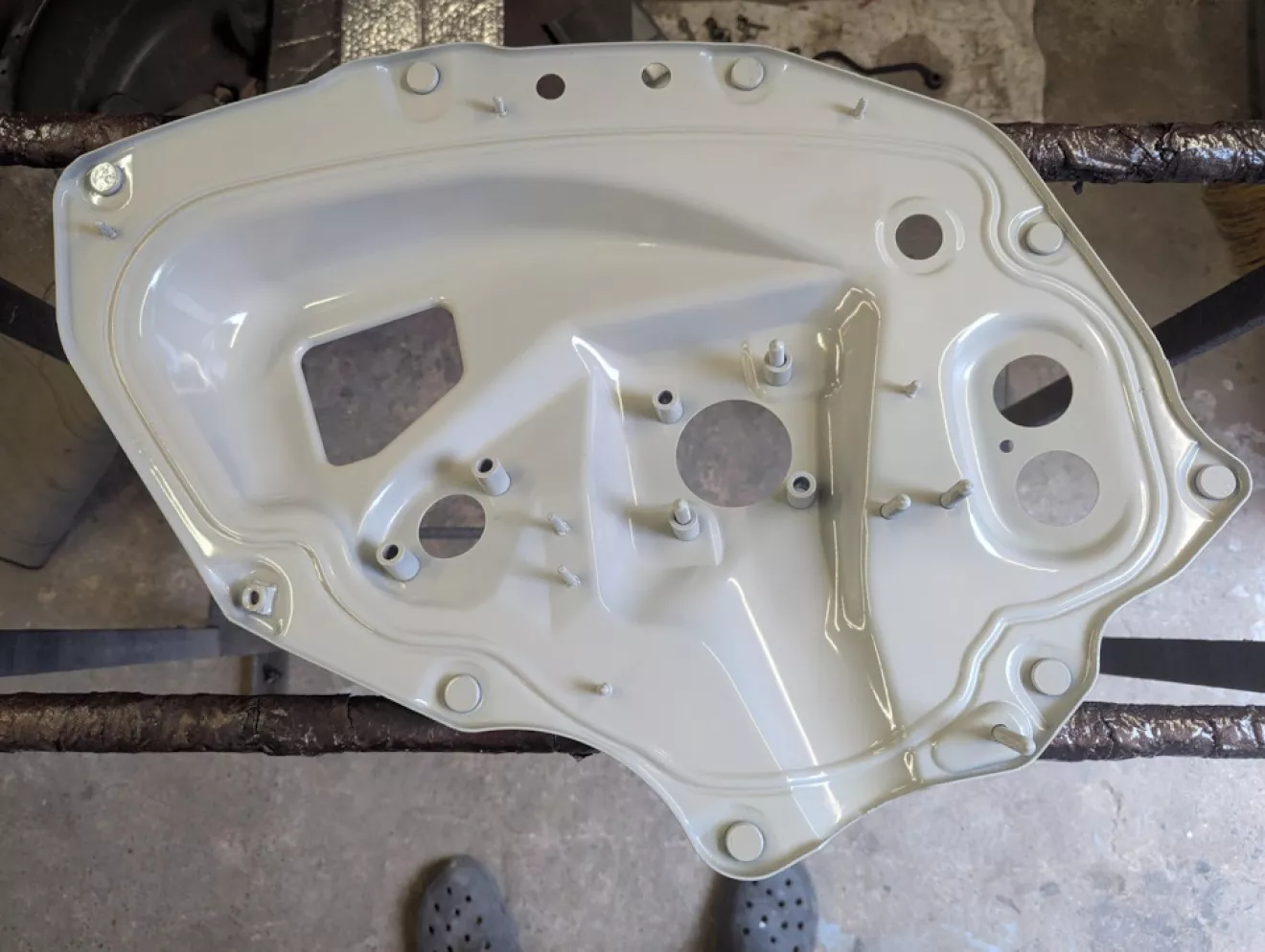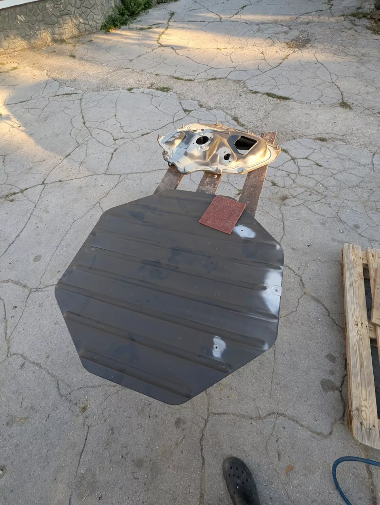 Также какой-то из прежних владельцев решил сделать внушительное отверстие над педалью газа — видимо, хотел протянуть провода в салон и посчитал это самым простым вариантом. Решил устранить «тюнинг»: вырезал кружок из листа металла и заварил дыру.