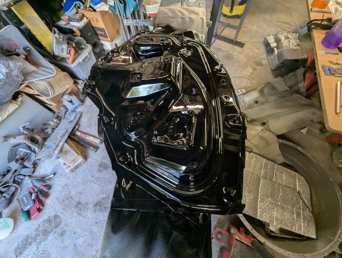 Покраска в чёрный глянец (прошу прощения за рабочий беспорядок — творческий процесс!).