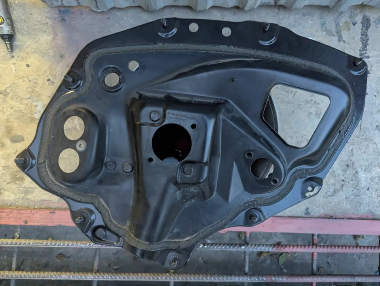 Следы эксплуатации со временем проявляются на всём: годы берут своё, а металл, как известно, не вечен. Щиток ВУТ подвергся коррозии — по отзывам (спасибо oldstyle), это место нередко страдает и через нижний стык щитка с передней панелью начинает просачиваться вода. Снял уплотнитель, зачистил остатки ржавчины и отпескоструил повреждённые участки.