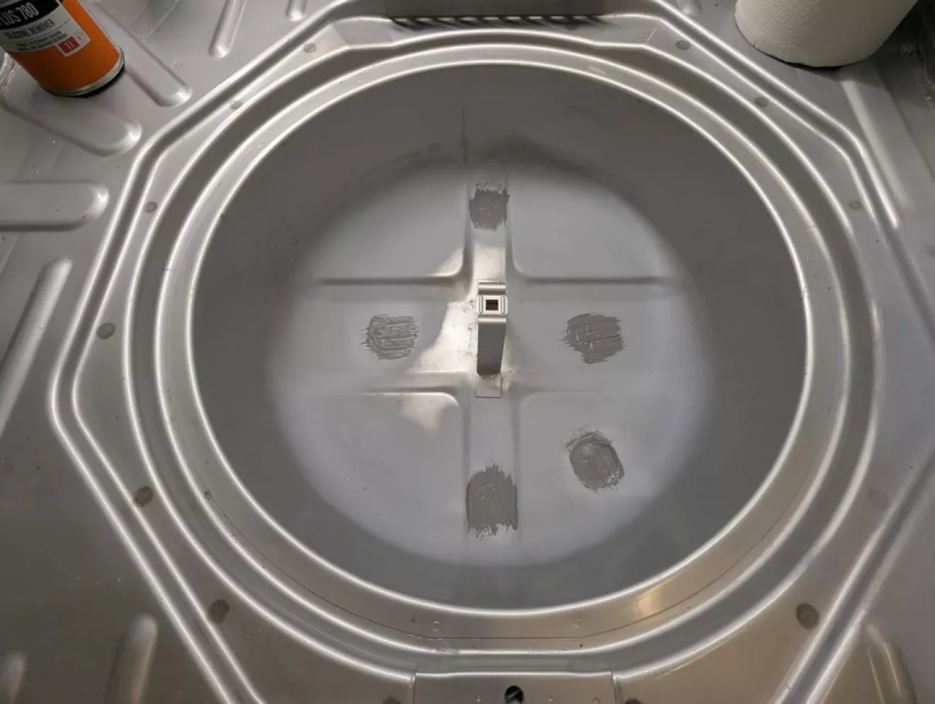 На всех кузовах Astra G есть металлические заглушки в нише запаски, которые держатся на очень крепком клею. Решил их снять и проверить, нет ли там очагов ржавчины. Осмотрел, почистил — всё оказалось в порядке. Поставил обратно на шовный герметик и забыл.