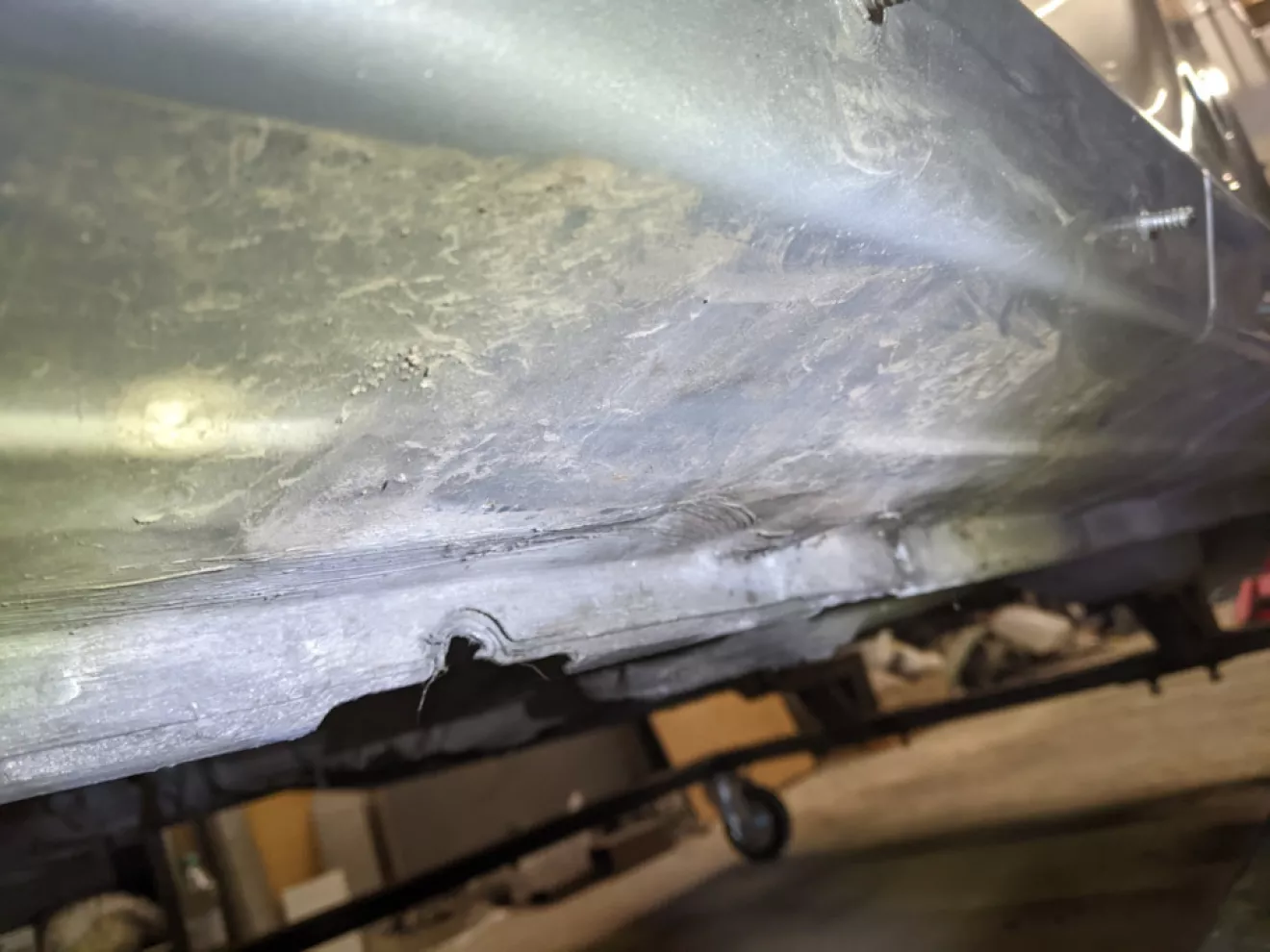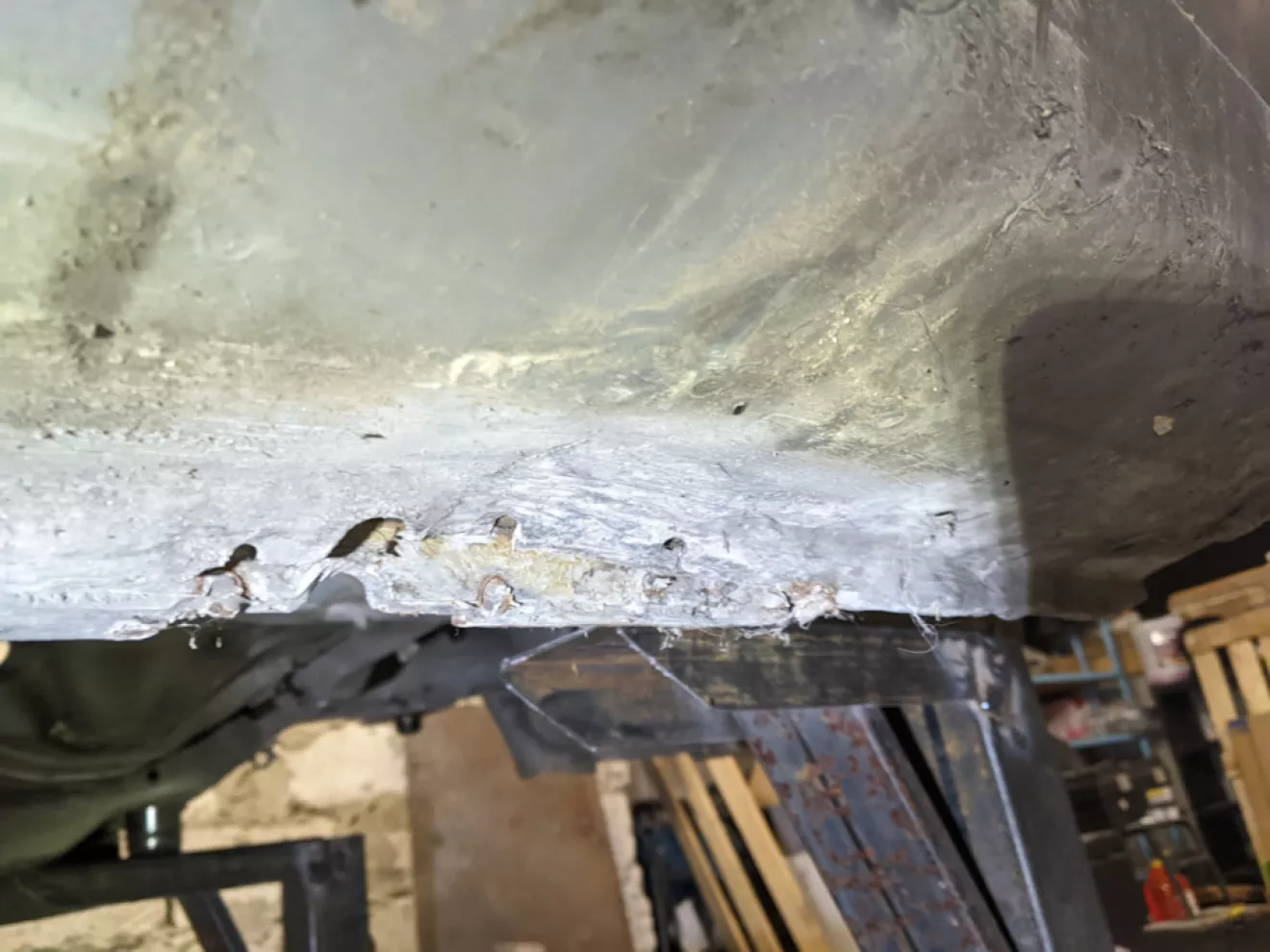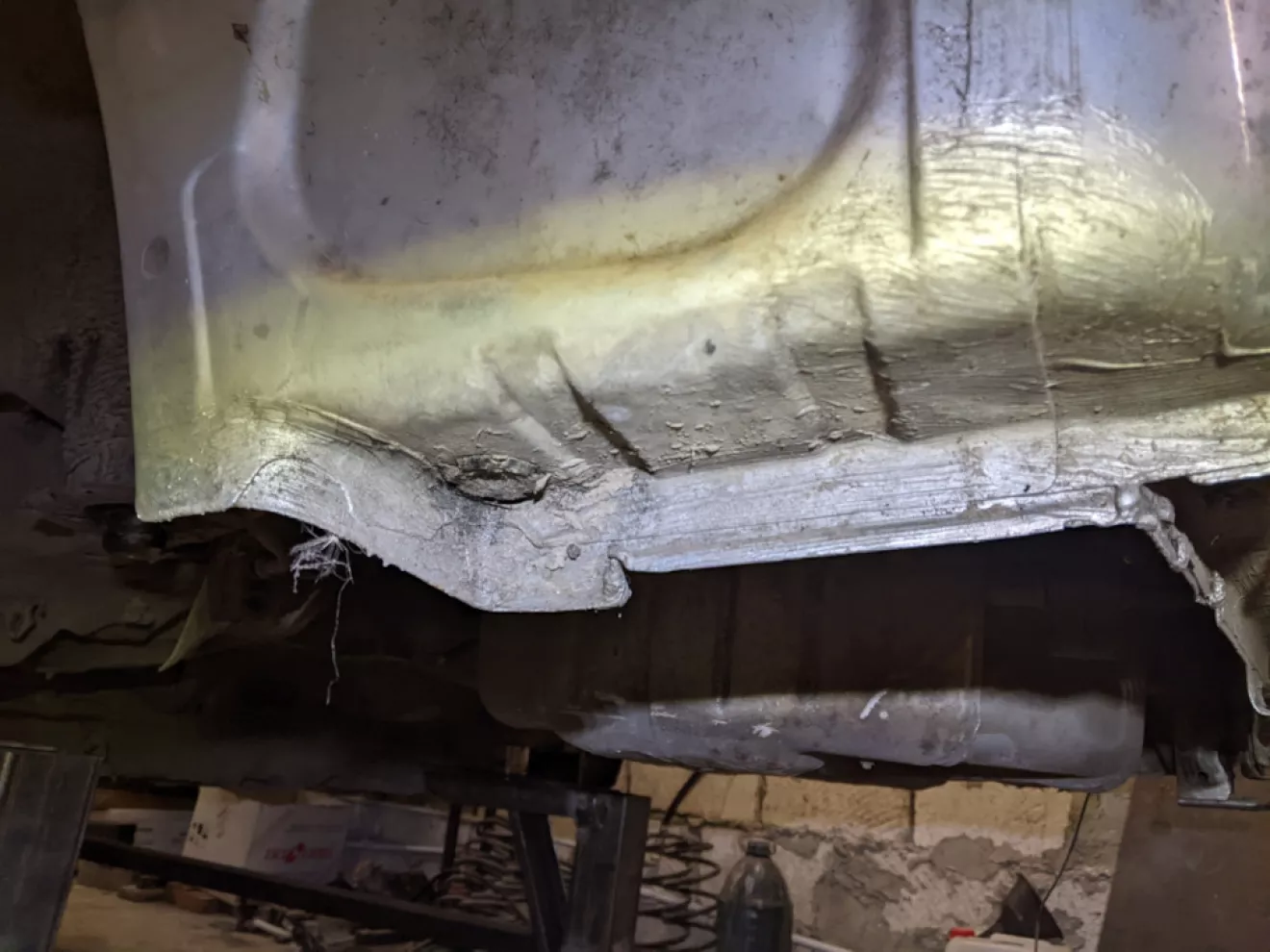 Есть одна единственная незначительная вмятина порога с нижней водительской стороны — отошёл лист внешнего порога от внутреннего усиления (со сварных точек), в остальном я кузовом доволен, нашел то что надо было, произведен и выпущен в/для Италии, а как знают многие машины для Италии делались со специальной обработкой, брать некоторые кузова Бертоне в которых не делались никакие ремонты можно наблюдать что даже отсутствие краски на метале не дает ему ржаветь. Были осмотрены самые слабые места, пока что всё ок