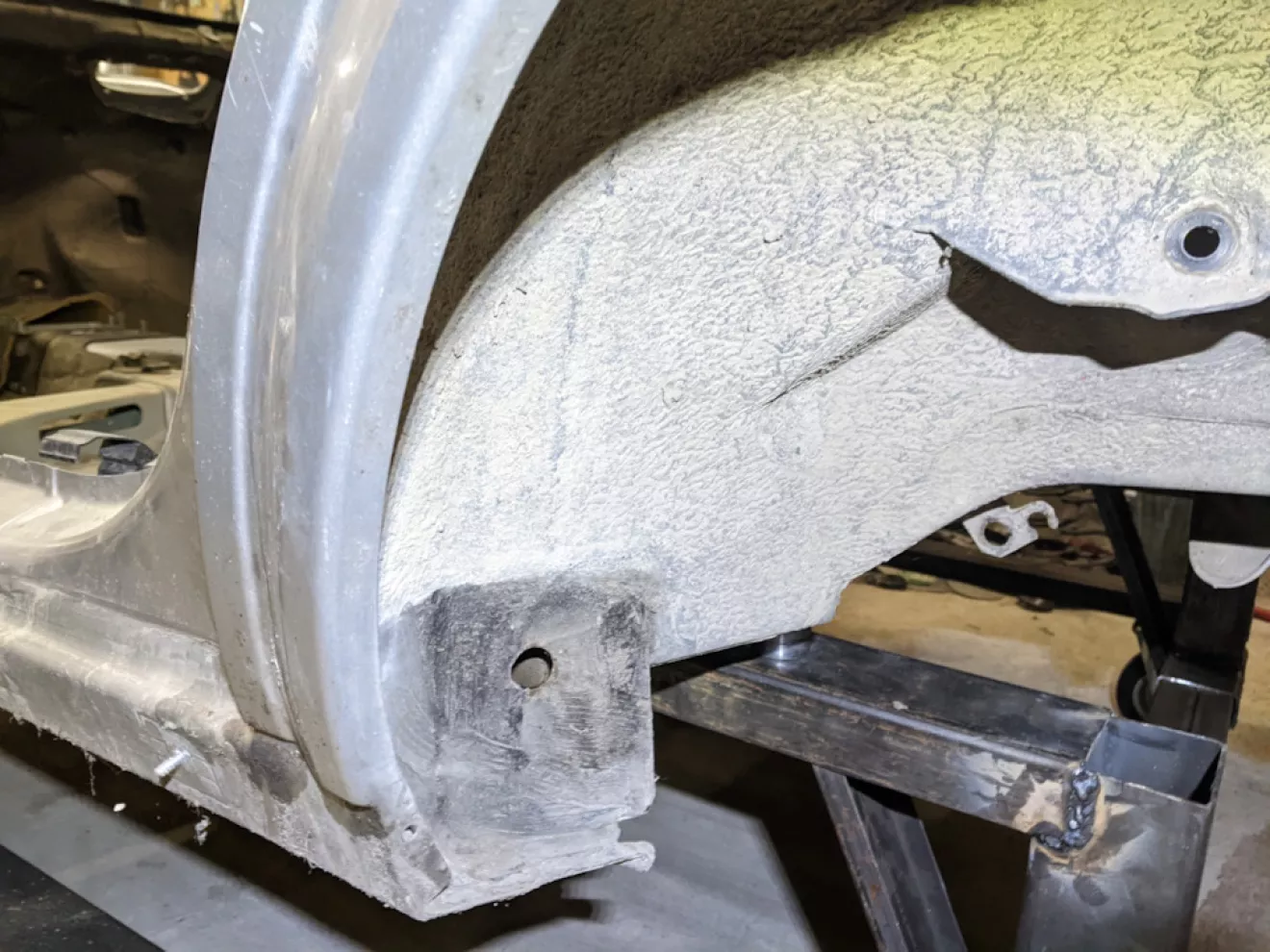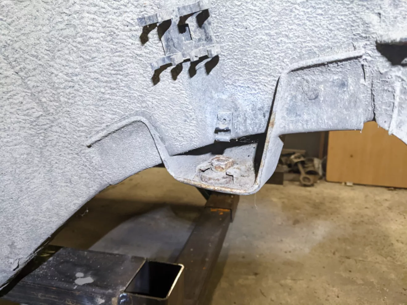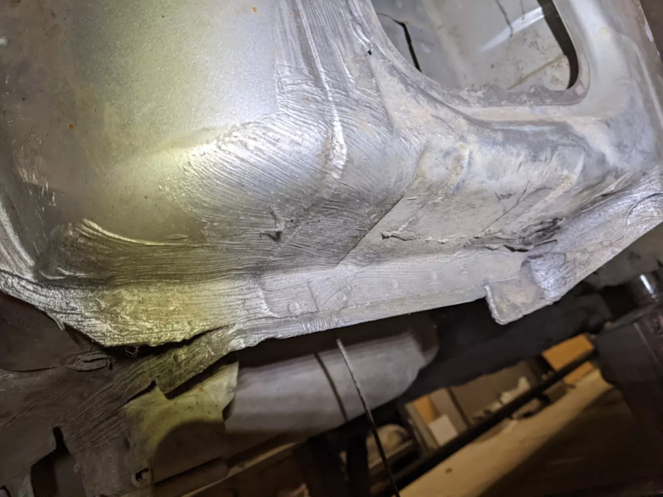 Есть одна единственная незначительная вмятина порога с нижней водительской стороны — отошёл лист внешнего порога от внутреннего усиления (со сварных точек), в остальном я кузовом доволен, нашел то что надо было, произведен и выпущен в/для Италии, а как знают многие машины для Италии делались со специальной обработкой, брать некоторые кузова Бертоне в которых не делались никакие ремонты можно наблюдать что даже отсутствие краски на метале не дает ему ржаветь. Были осмотрены самые слабые места, пока что всё ок