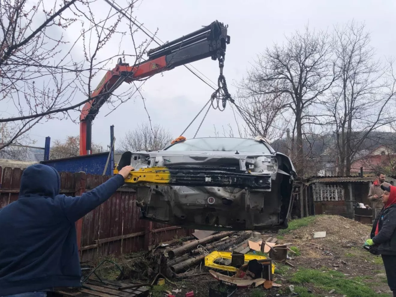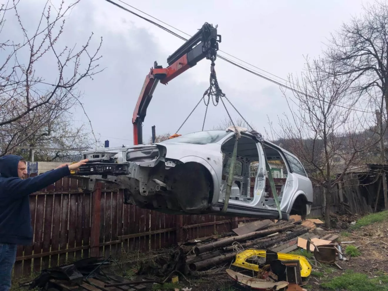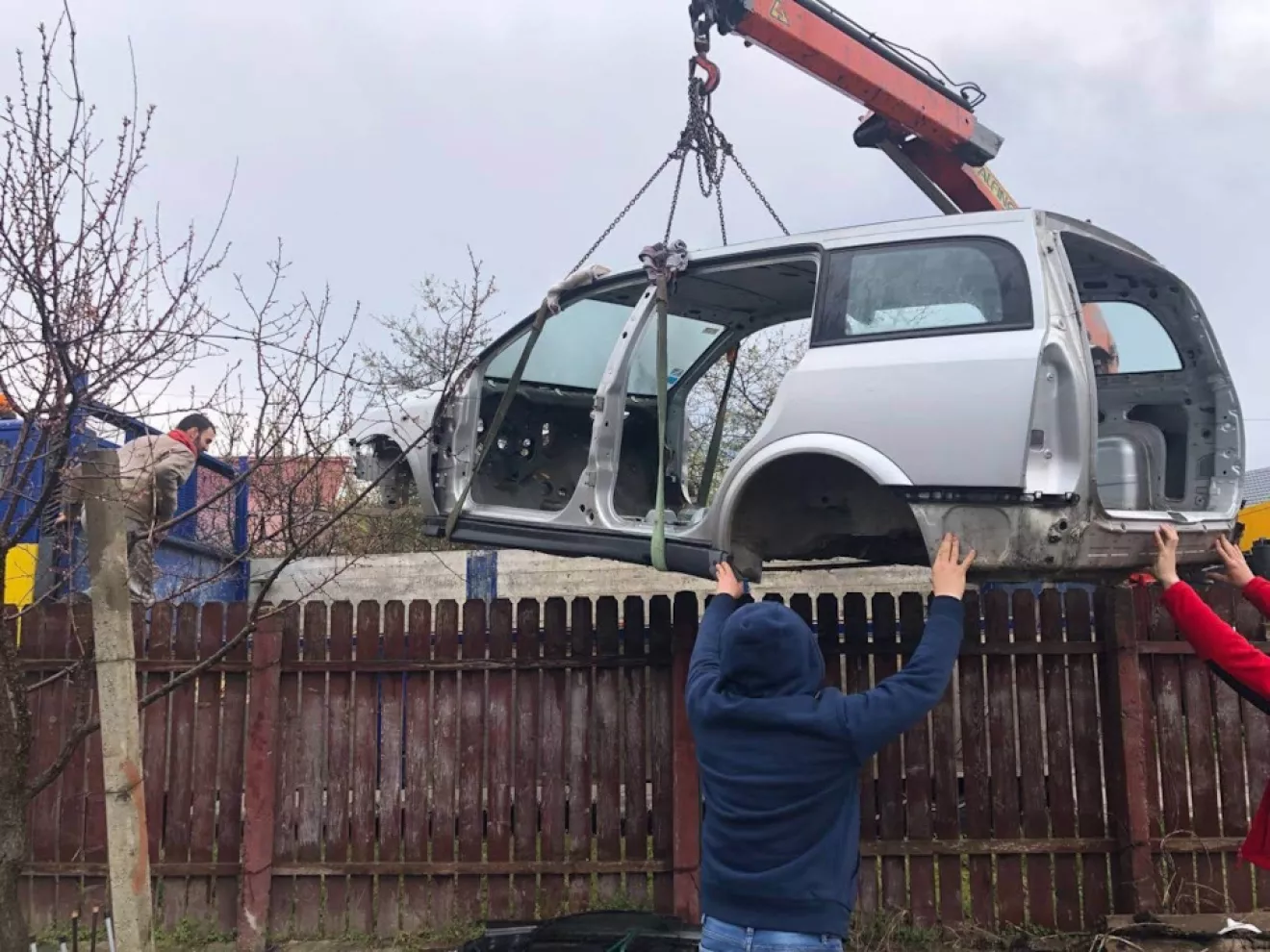 Без манипулятора не обошлось, чисто голый кузов оказался не легким, зато на металлоприёмке дают за них копейки )