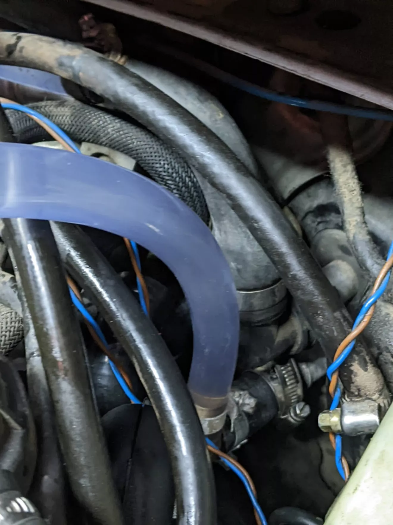 Как-то упустил этот момент и совсем забыл о нём. Дело было в ноябре 2024 года — вечером ехал по делам и заметил, что печка начала дуть еле тёплым воздухом, причём слабо. Если стоять на месте — становилось совсем холодно. Так и поездил пару дней, пока не выдался свободный вечер. Тогда разобрал всё, что мешало доступу к радиатору печки, и собрал вот такую конструкцию: