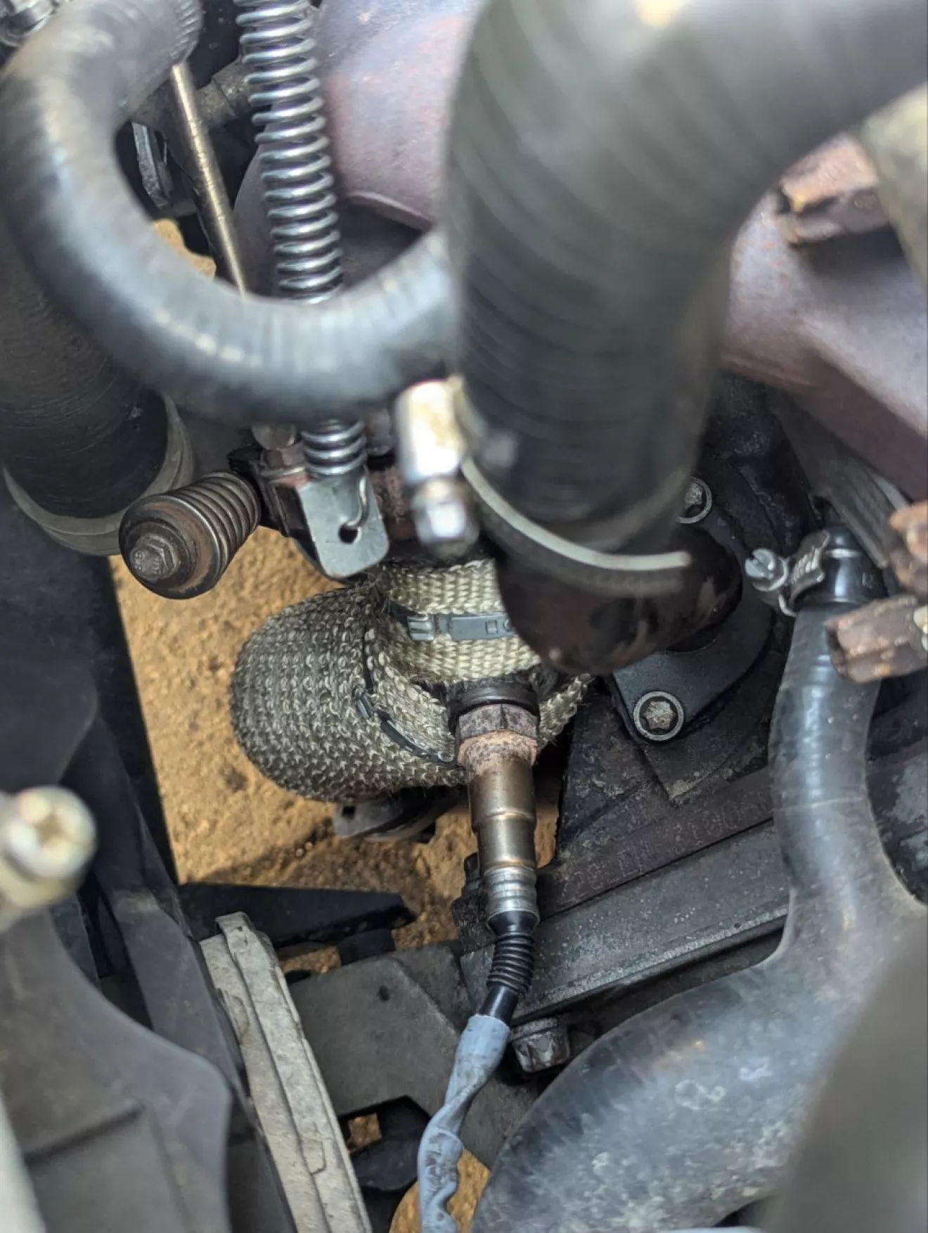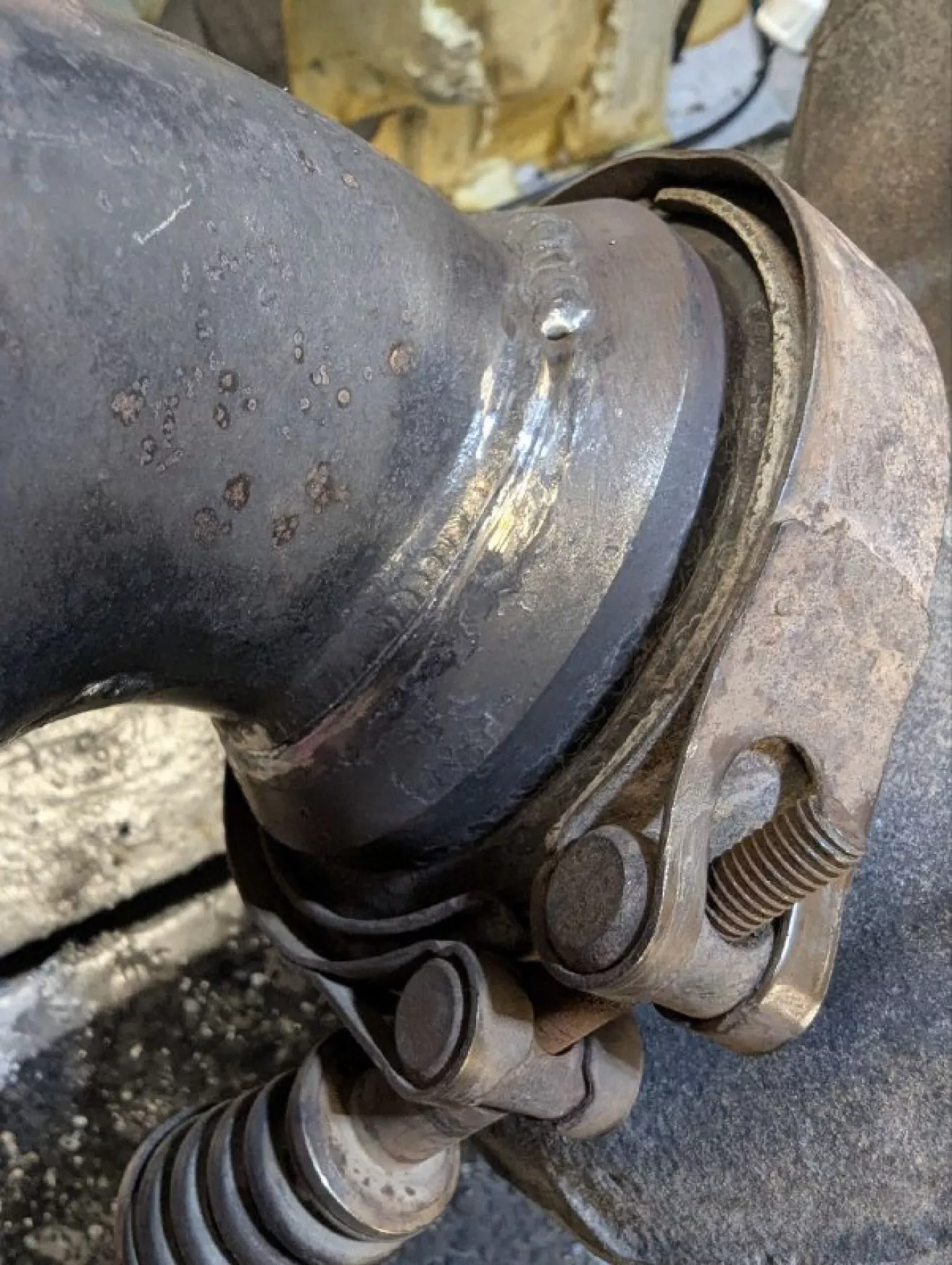 Ещё при покупке даунпайпа был заказан термобинт, но руки до него всё не доходили. И вот как-то утром заглядываю под капот — вижу, как вокруг верхнего фланца проступает влага, прямо по шву сварки. Странно, ведь даунпайп варился и снаружи, и изнутри… Ну лааадно.