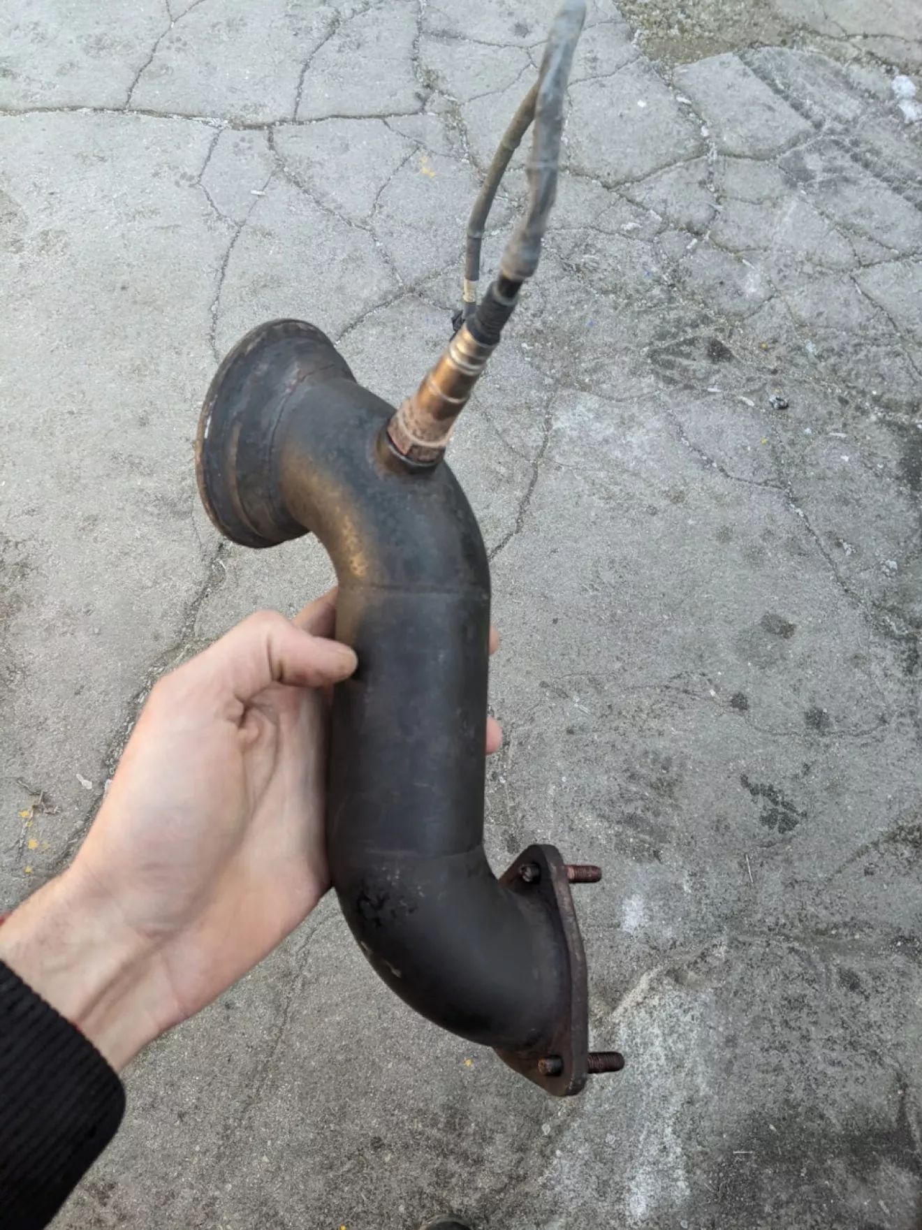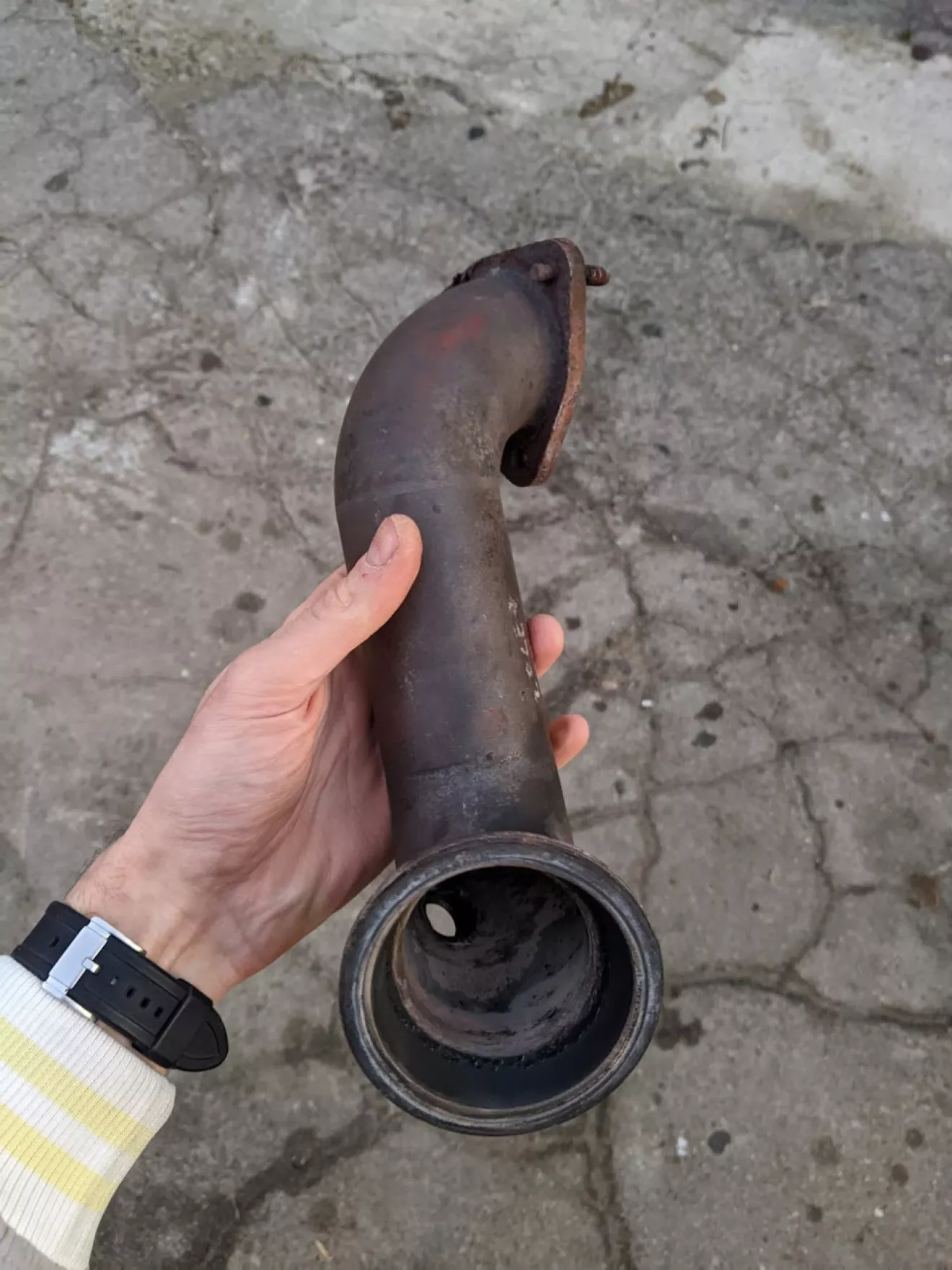 Очередная покупка — бэушный безкатовый даунпайп из нержавейки. Новый стоит очень дорого, а сварить такой самому заняло бы гораздо больше времени и обошлось бы в такую же сумму на материалы. Так что считаю, что это отличная сделка.