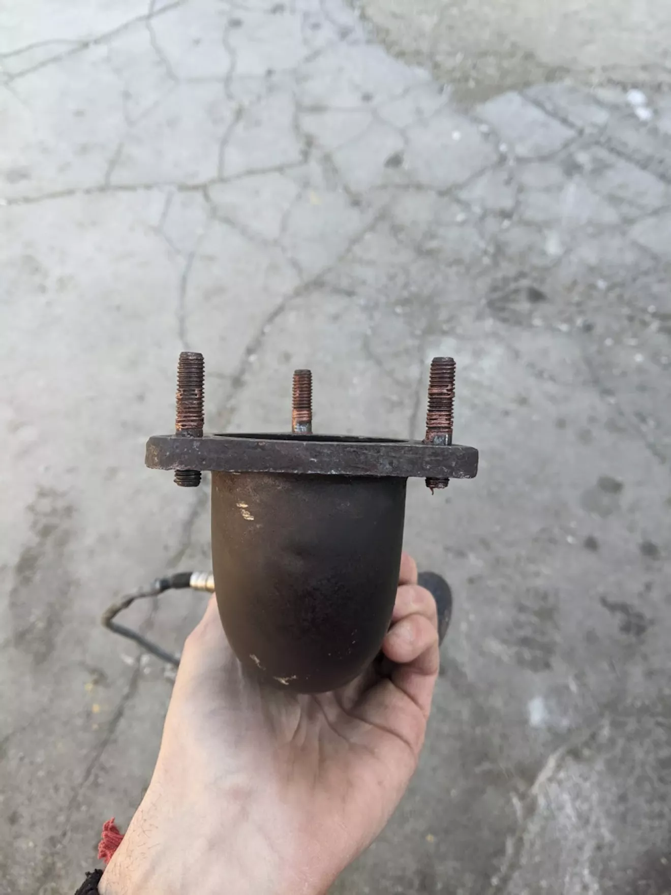 Пришёл он, правда, с проблемами: одна шпилька выкрутилась вручную, а остальные две не поддавались даже с помощью инструмента и пары матерных слов. Но сварка решает все вопросы — хотя не с первого раза! :))