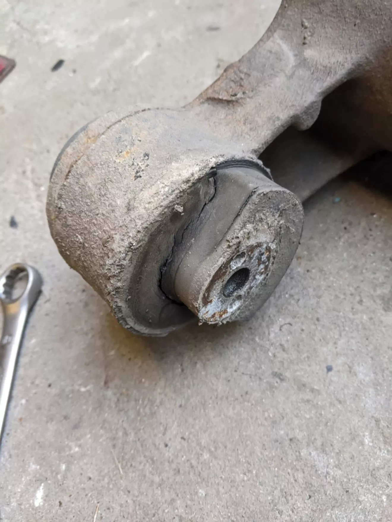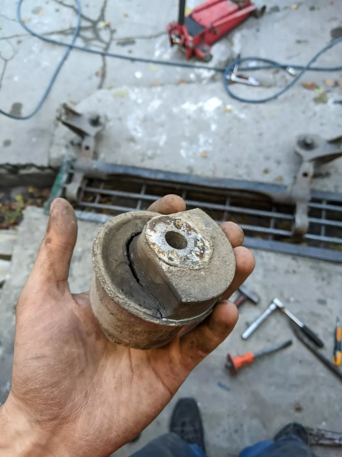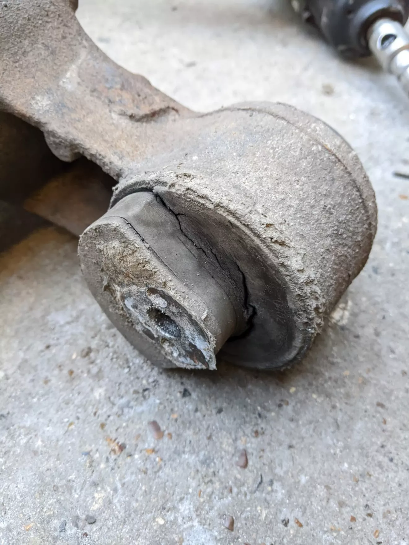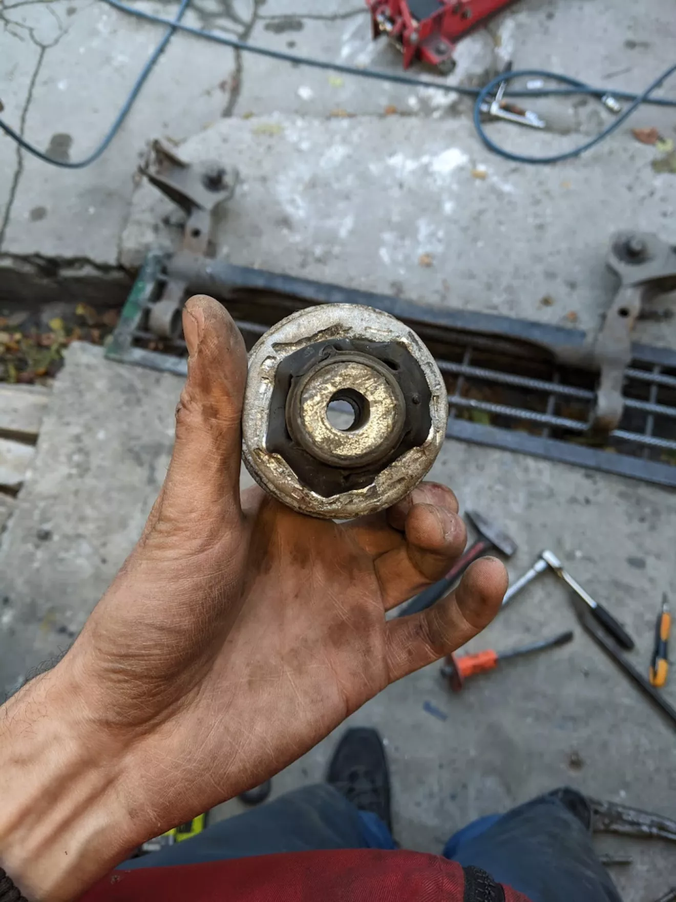 Эти сайлентблоки уже были давно уставшими, иногда смотрел на машину со стороны и как буд-то колесо стояло не ровно ))) если присмотрется на них поближе то можно ужаснуться, пару фоточек в студию:
