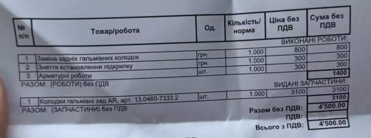 За день до поїздки - з'явилось попередження про зношення задніх колодок - тож одним махом можна було 2 справи зробити.