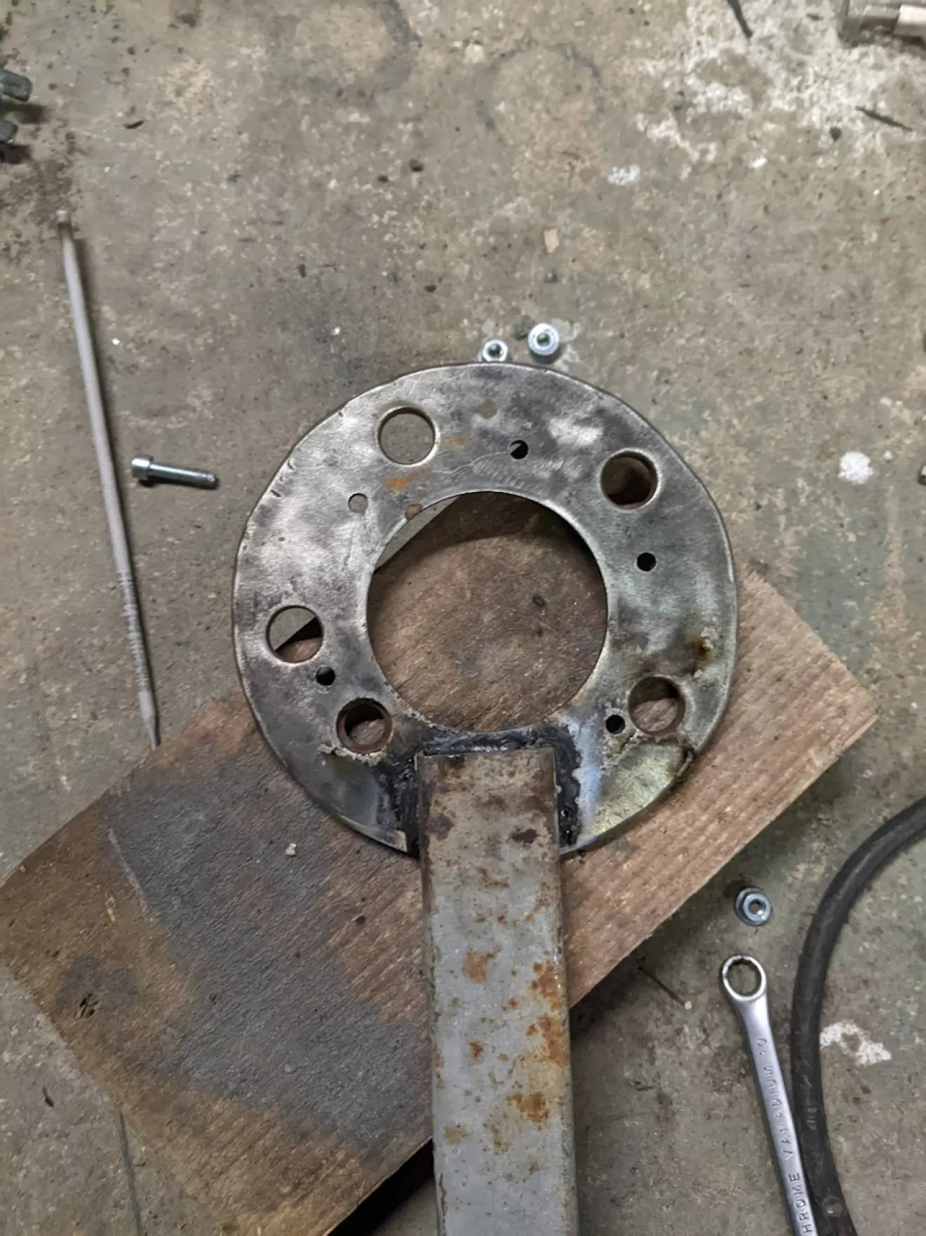 Кусок старово тормозного диска от BMW и метровый кусов профиля, заварить и засверлить — зделанно