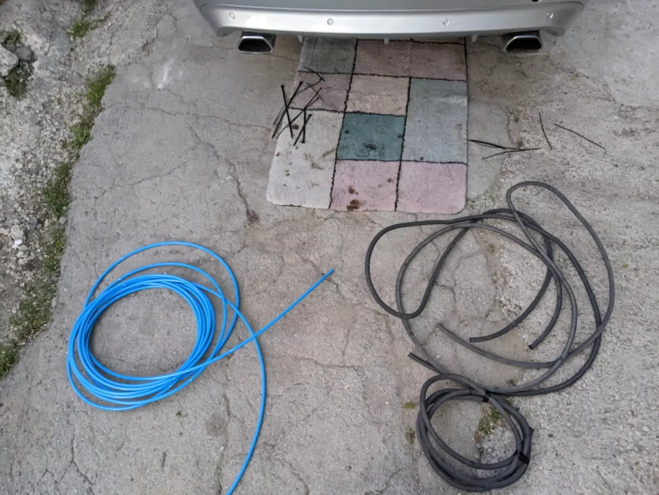 Понакупив новой трубки диаметром 10 приступил к установке — всё конечно в гофру (с бывшего сервиса осталось)
