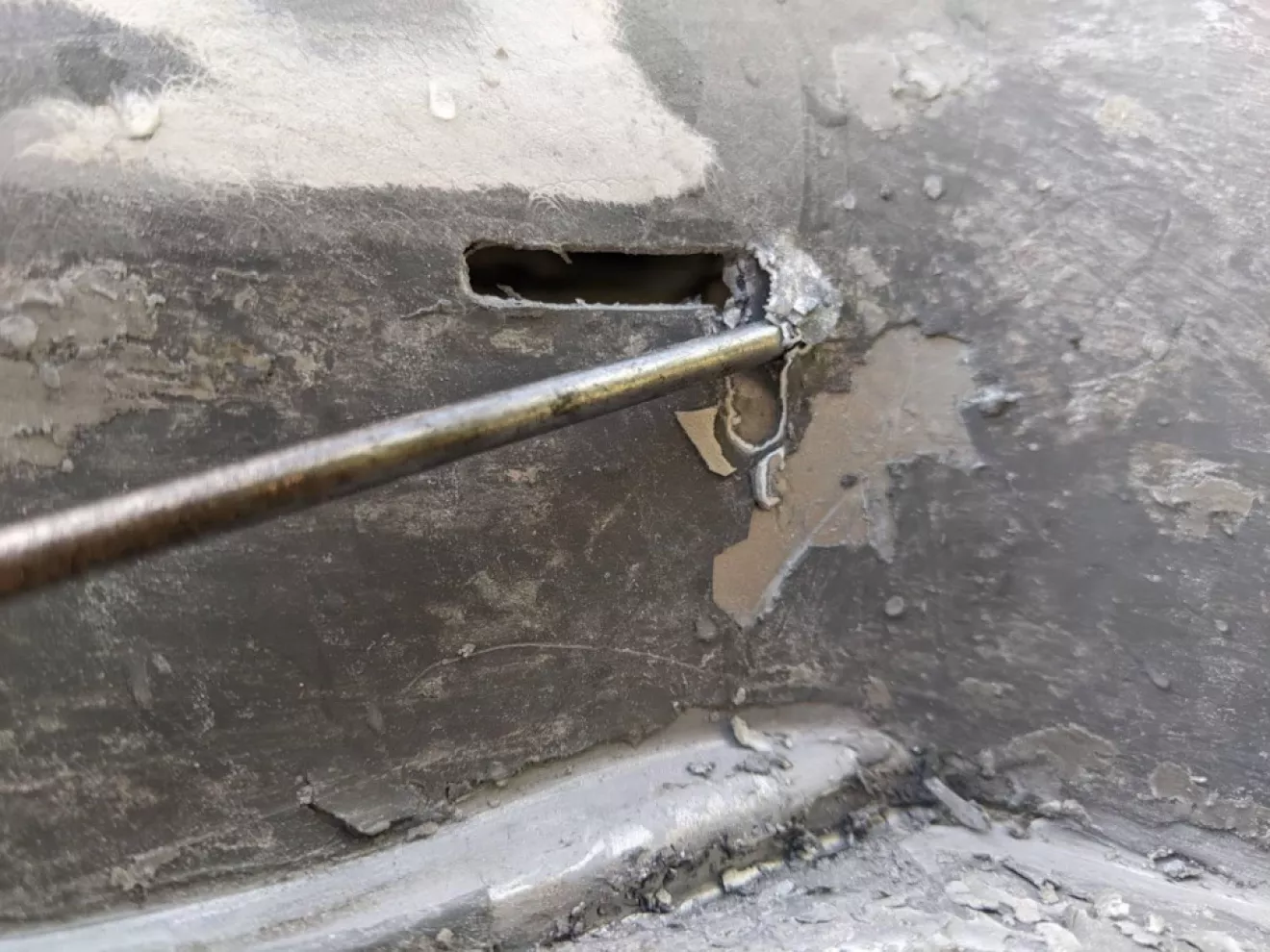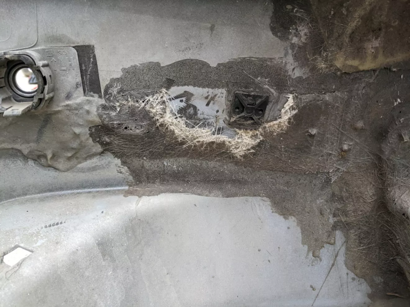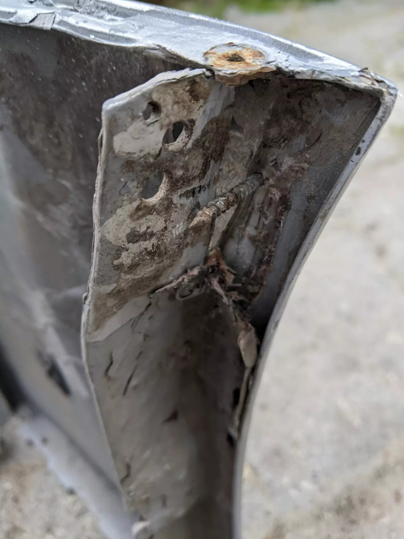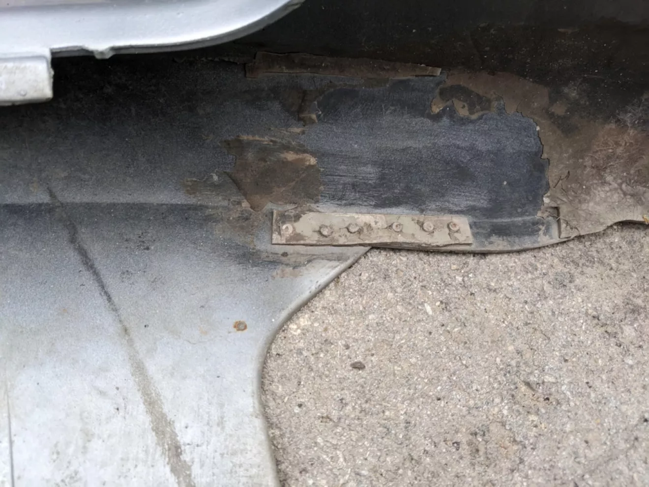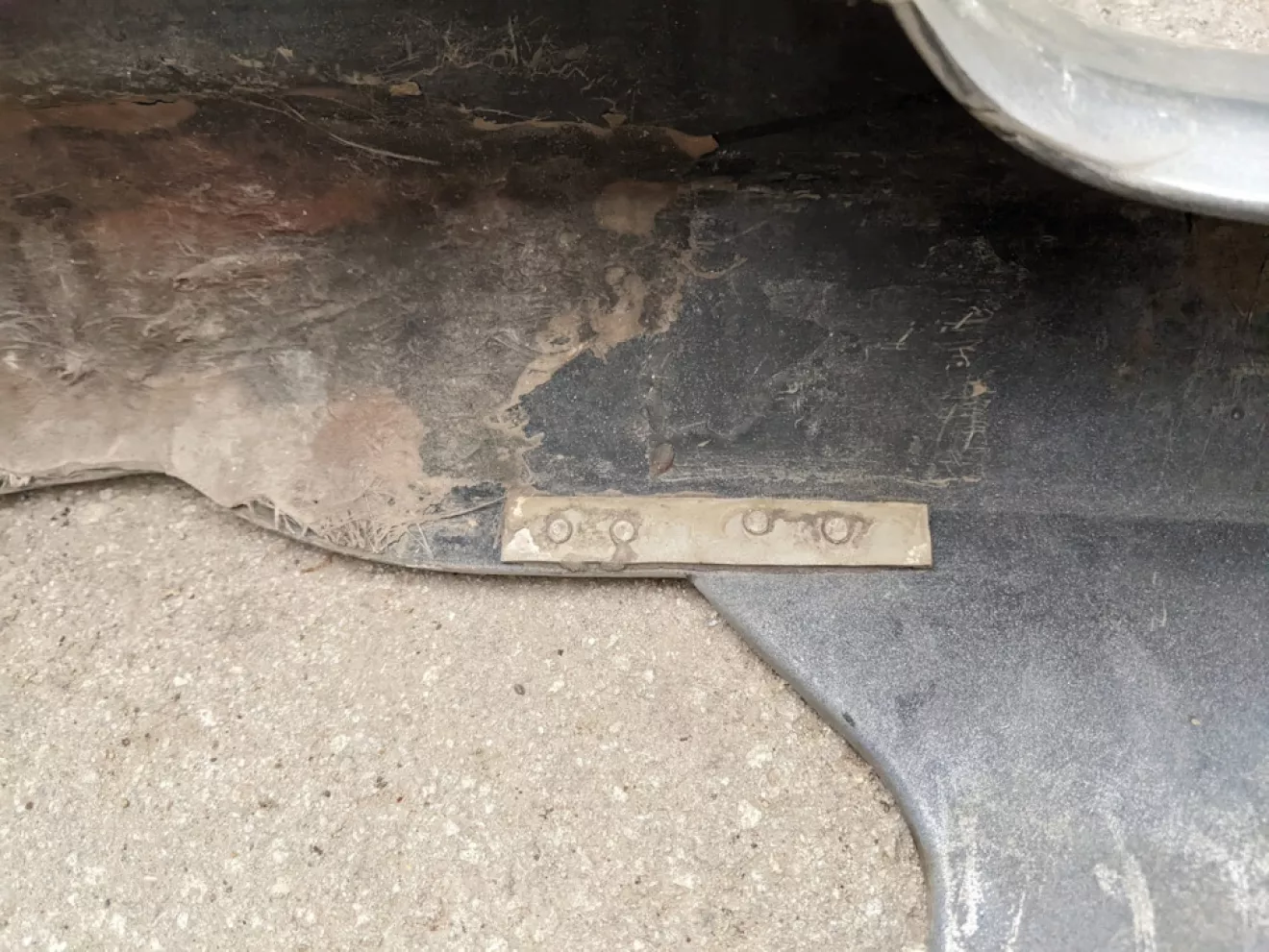 Далее начиналось самое интересное, но я ещё об этом не знал, умники и мастера которые до этого делали передний бампер много знали и никому не говорили, зато наложили очень много всего что было под рукой, алюминиевых пластин на заклёпках и побольше стекловолокна плюс саморезов.