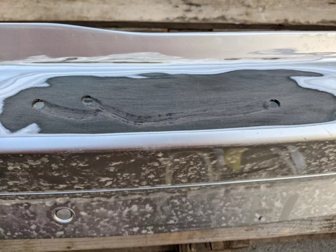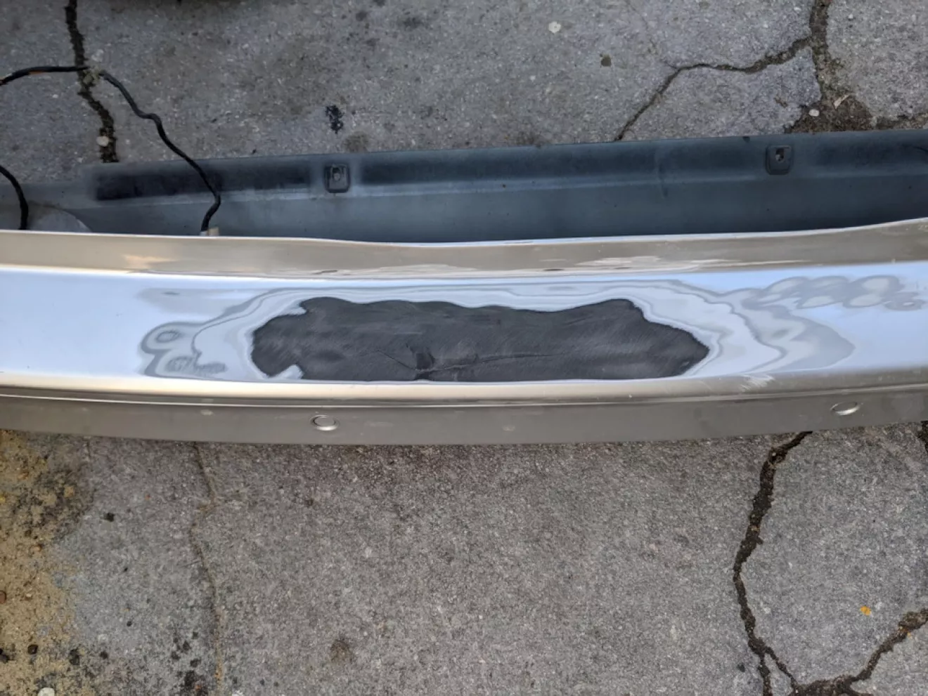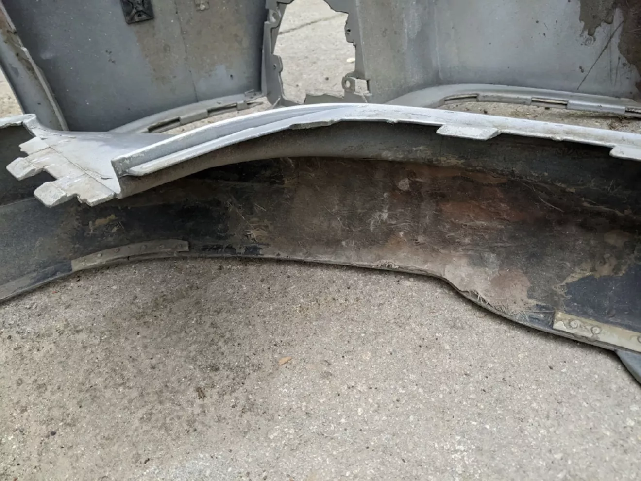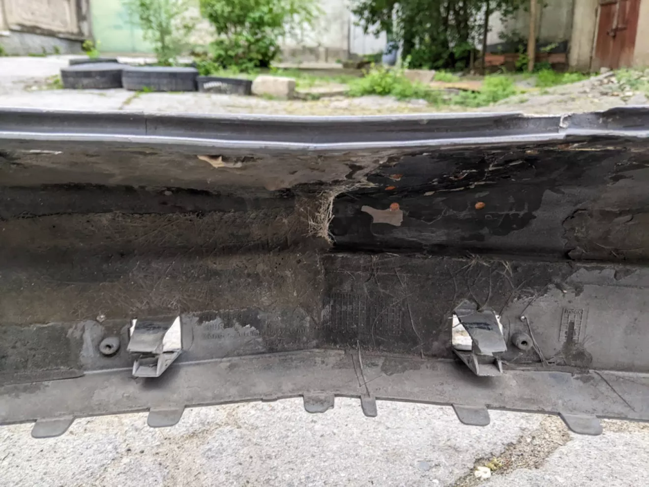 Задний бампер был ещё зимой по моей вине разбит об столбик на парковке супермаркета, не увидел его из за сугроба ещё и темно и все куда-то торопились, усилитель пошёл под рихтовку, благо не сильно толстый, делов на 15 минут. Вроде трещина не большая
