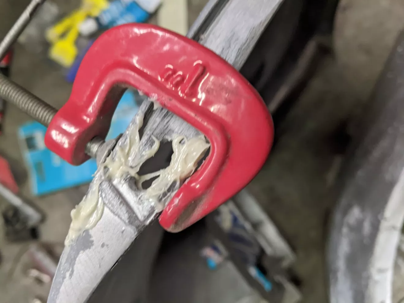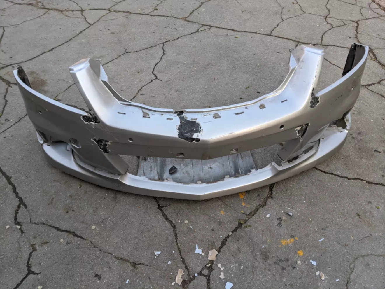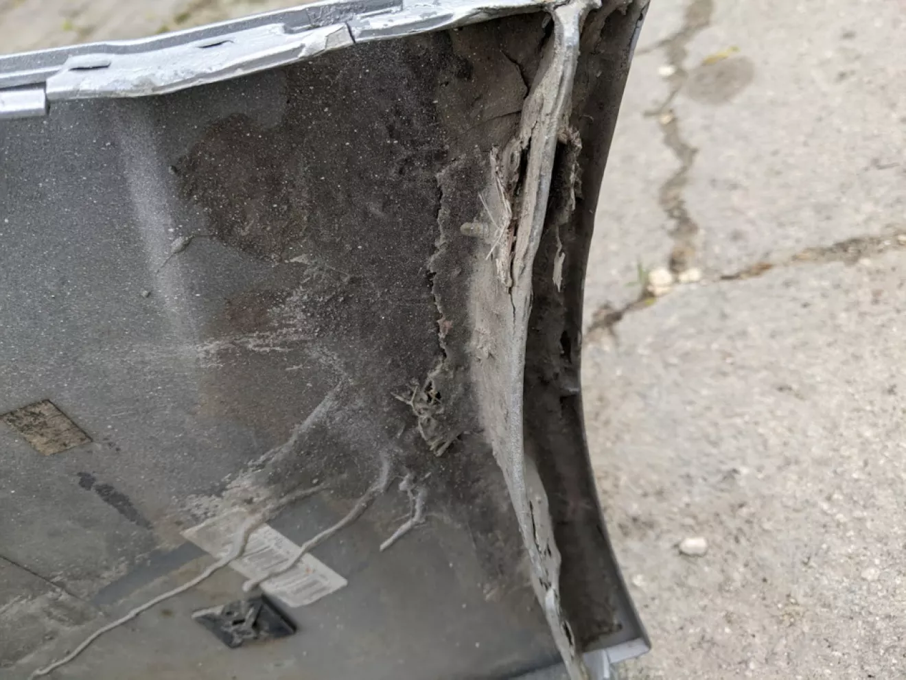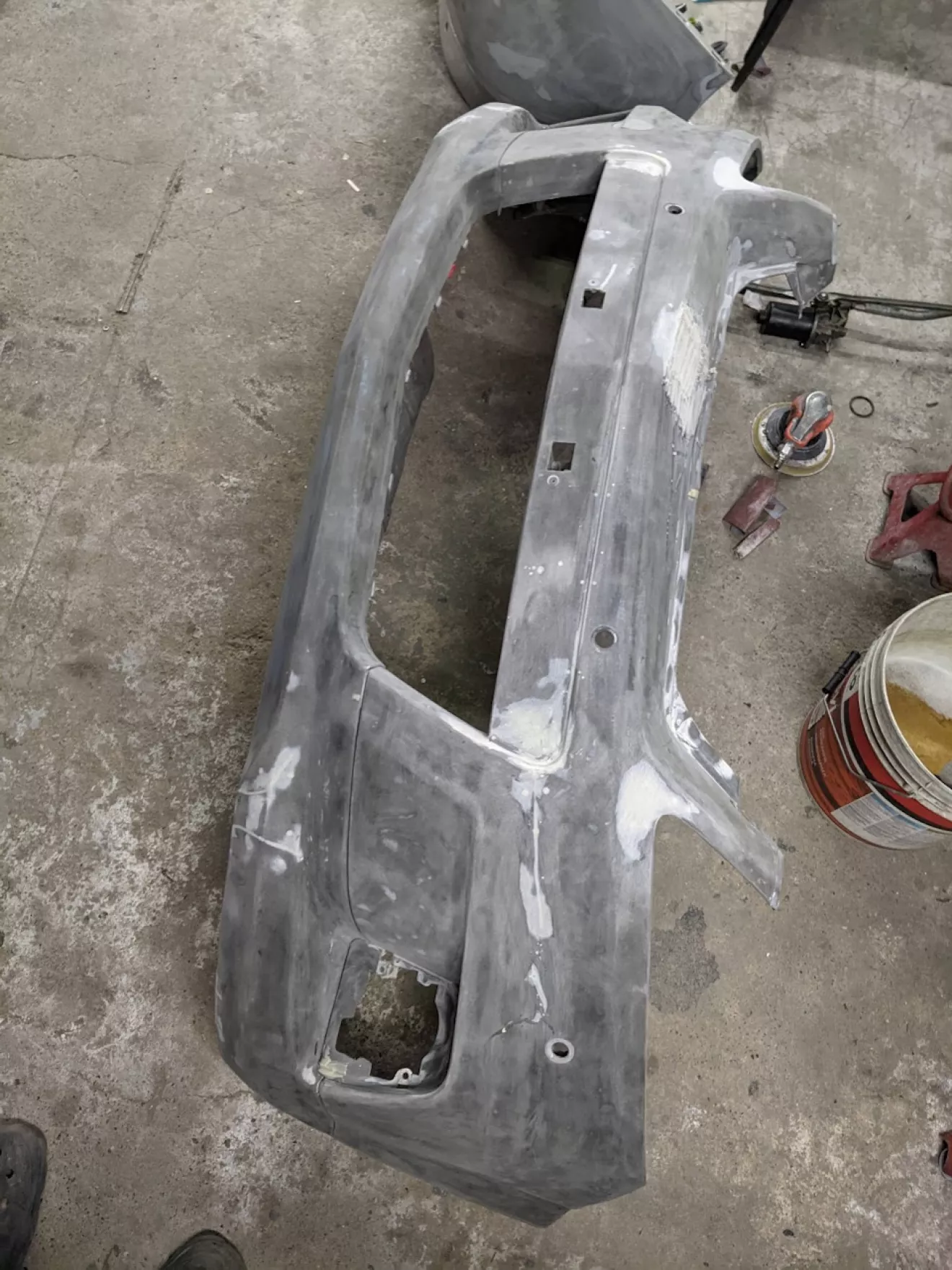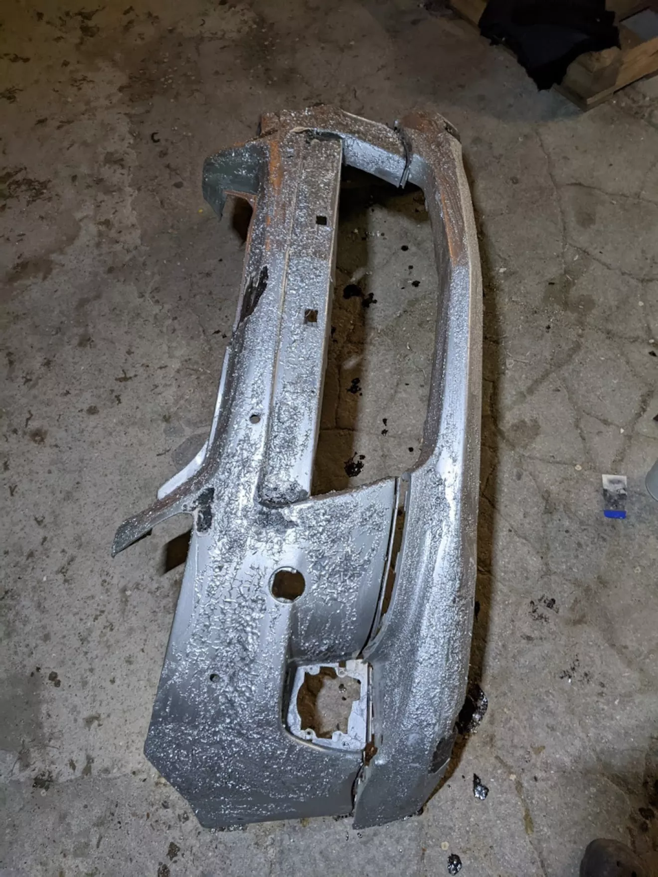 Шлифовка, чистка, клейка, и всё это заняло примерно недели 3, в начале было тяжелее всё крепить чтоб придать форму, крепил всякими способами которые приходили в голову, по итогу всё заклеил и придал нужную форму, при этом сняв с бампера пару КГ, да бампер был довольно тяжелый по началу. Делал так, там где трещина, в конце высверливал отверстия чтоб дальше не пошло и по сторонам для крепления стяжек, таким способом получилось закрепить все поврежденные места, в конце заделываем отверстия тем же клеем.