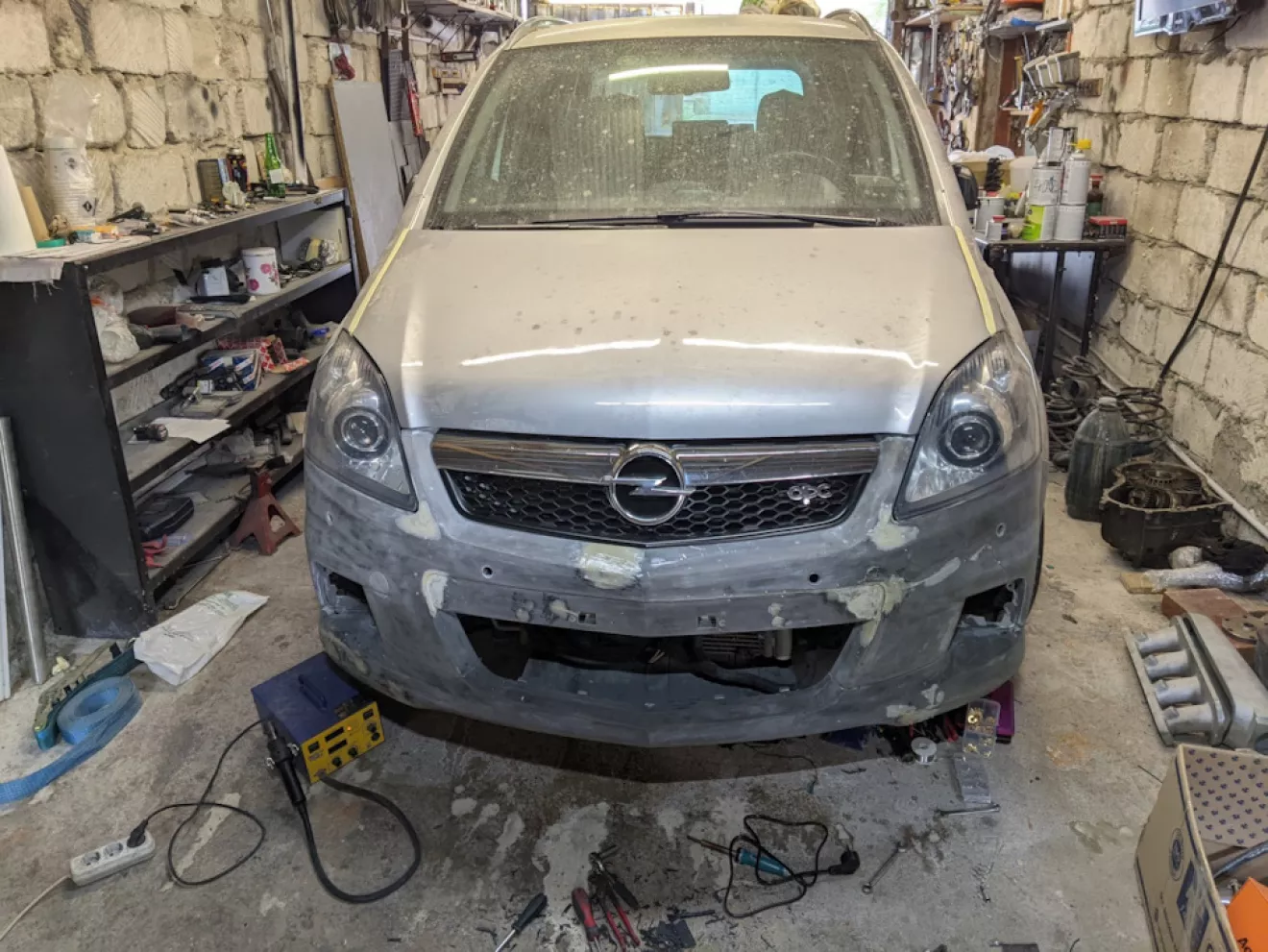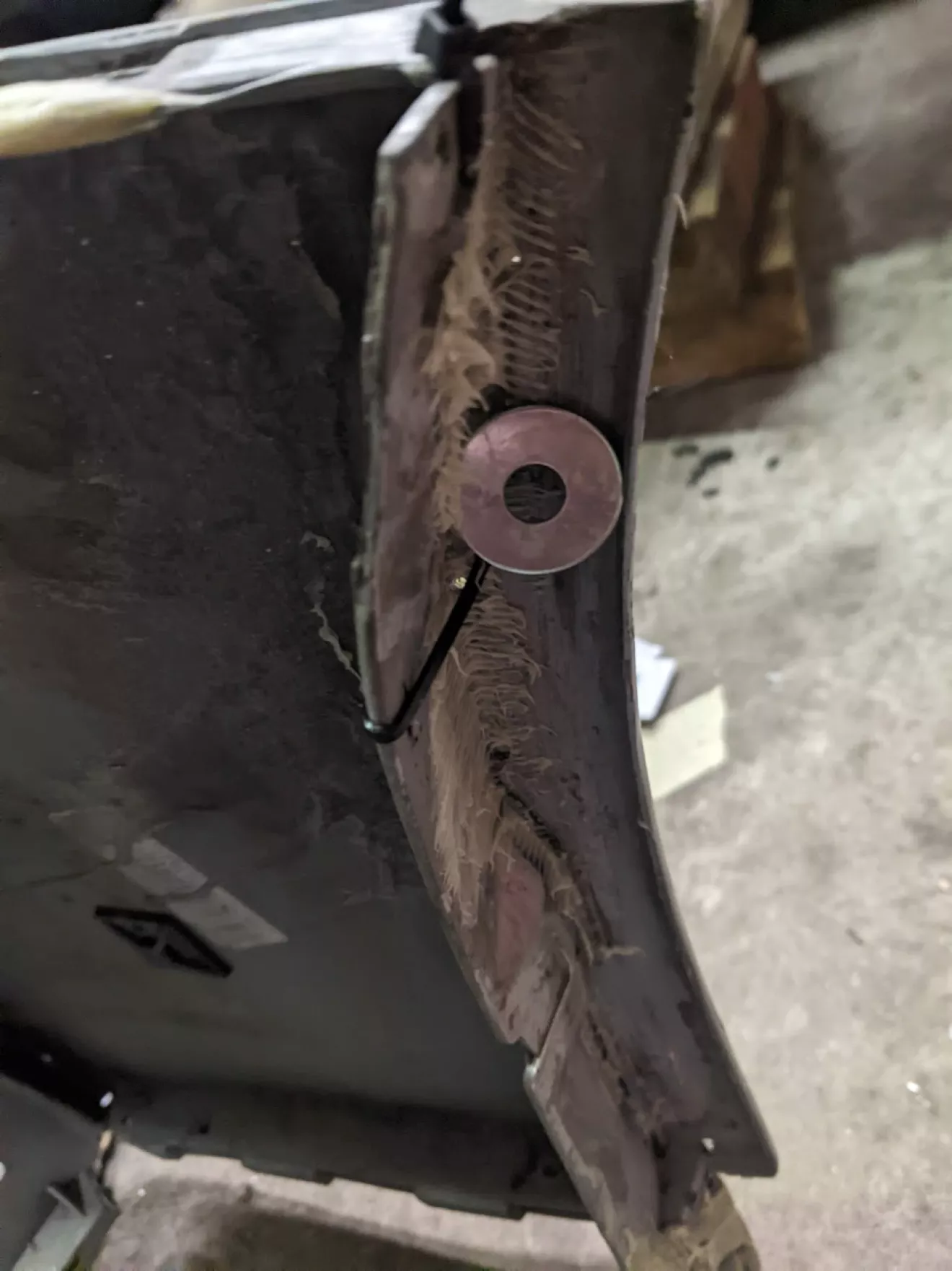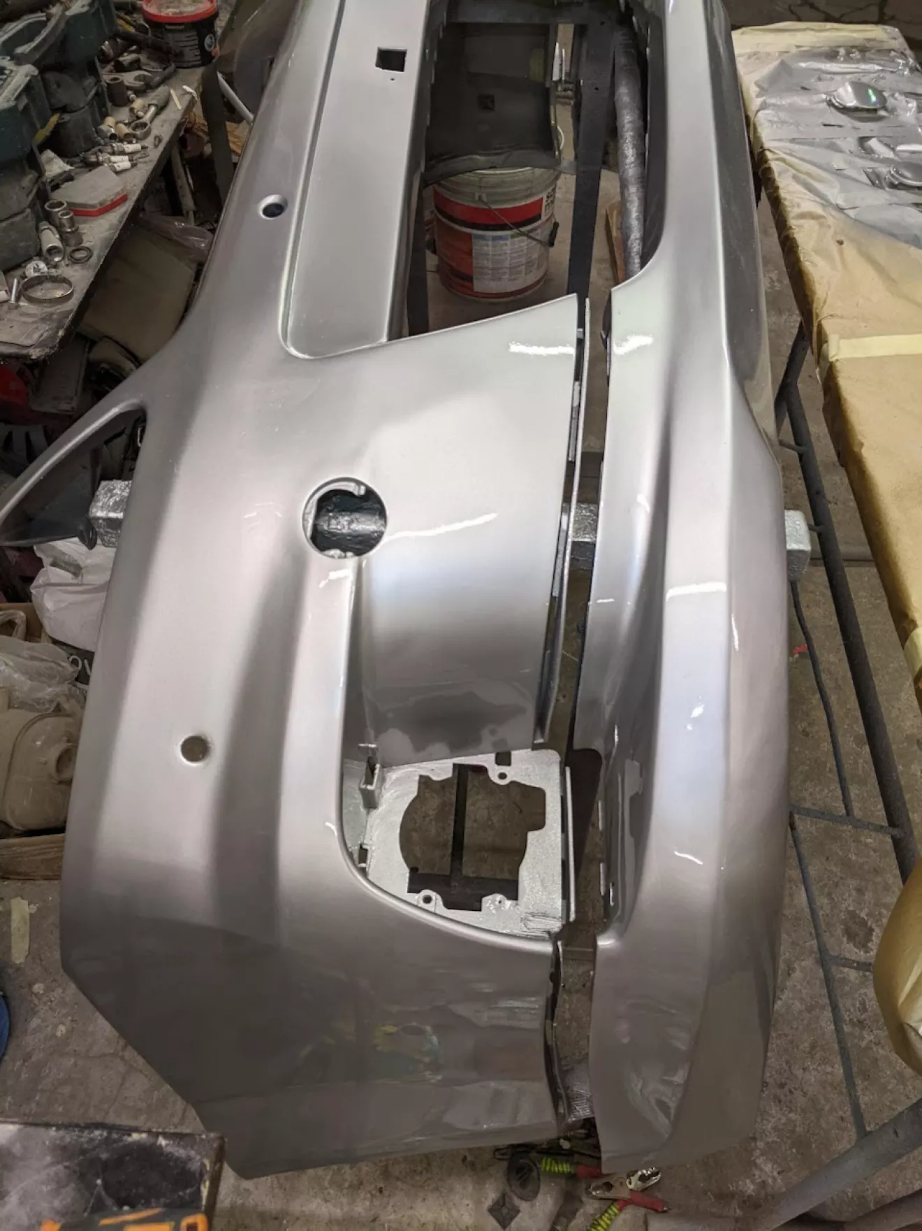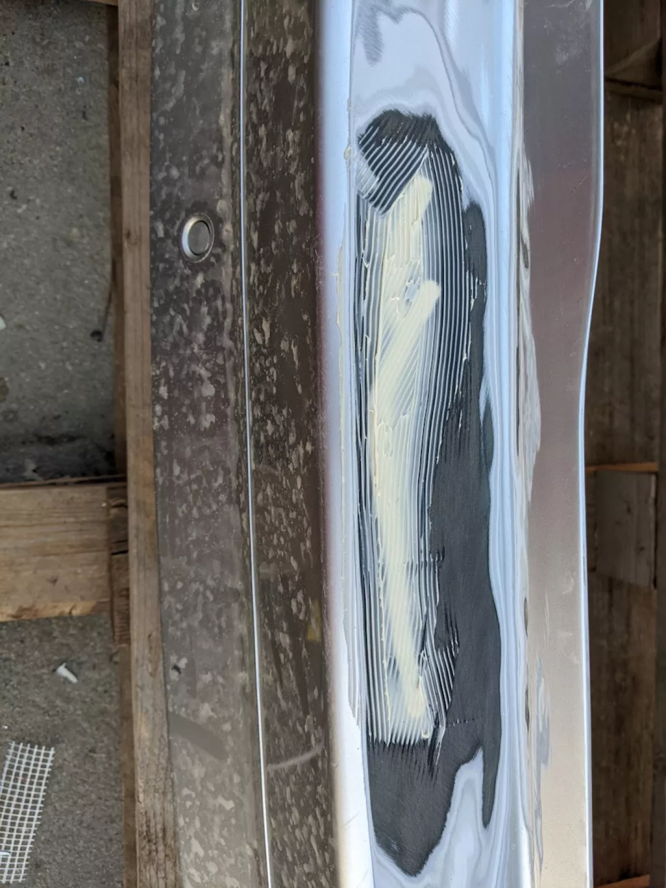 Шлифовка, чистка, клейка, и всё это заняло примерно недели 3, в начале было тяжелее всё крепить чтоб придать форму, крепил всякими способами которые приходили в голову, по итогу всё заклеил и придал нужную форму, при этом сняв с бампера пару КГ, да бампер был довольно тяжелый по началу. Делал так, там где трещина, в конце высверливал отверстия чтоб дальше не пошло и по сторонам для крепления стяжек, таким способом получилось закрепить все поврежденные места, в конце заделываем отверстия тем же клеем.