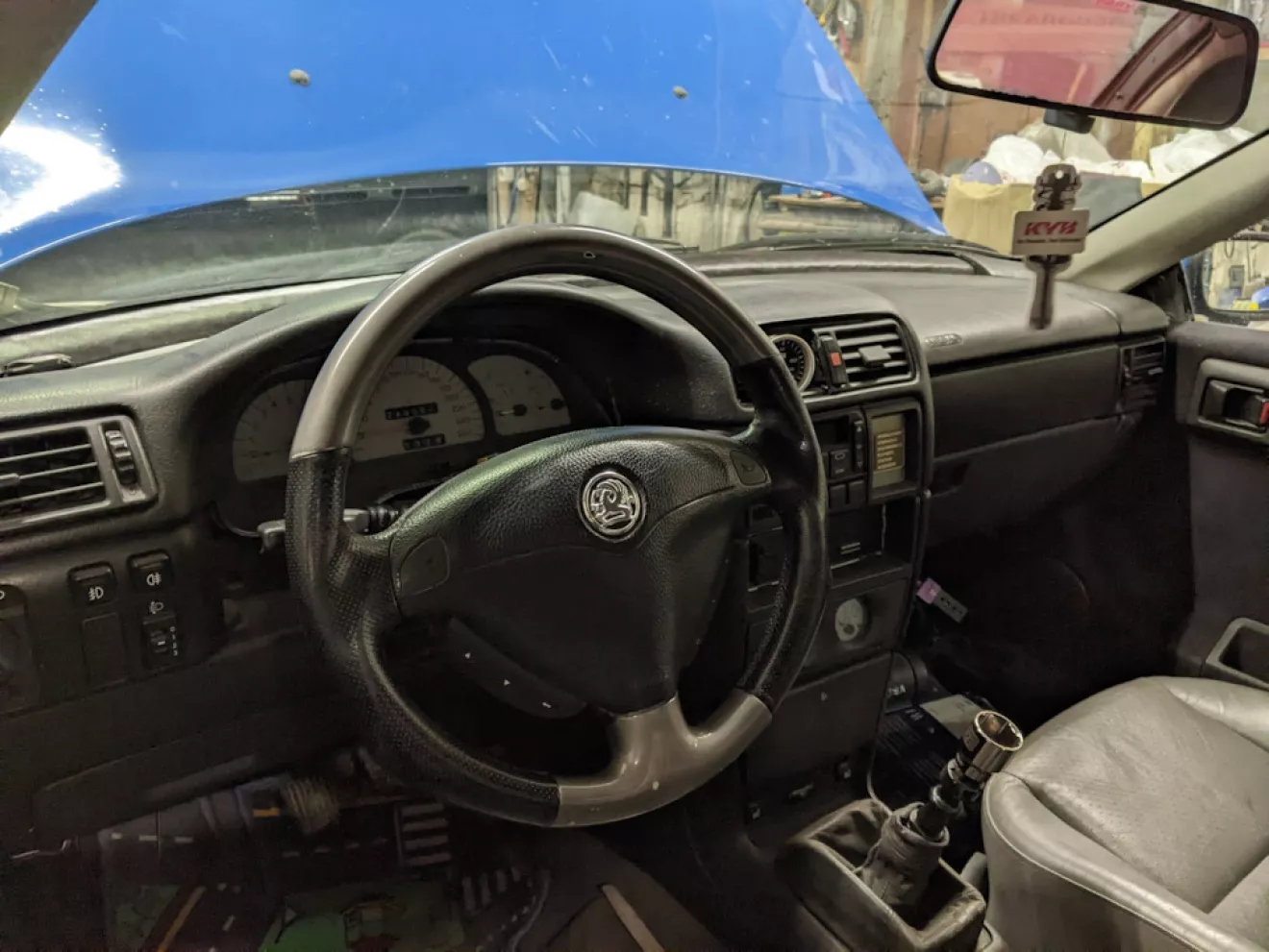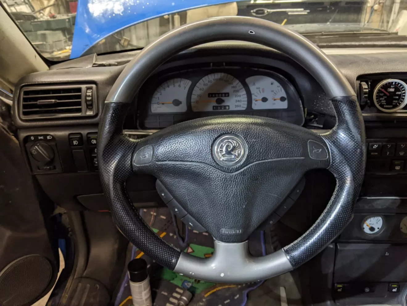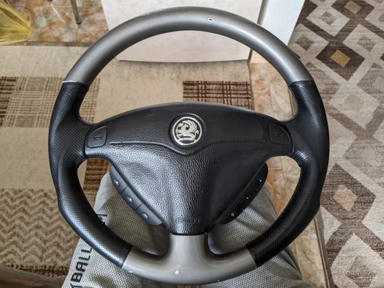 Давно себе искал трехспицевый руль от Вектры — найти такой достаточно сложно оказалось, и как-то мне в один вечер пишет знакомый что у него таких попались 2 и он оставит себе только один, правда со значком Vauxhall. Я не думая долго — забрал его, правда руль был без улитки.