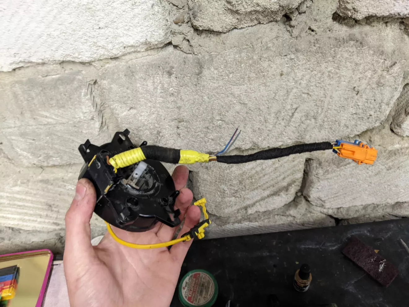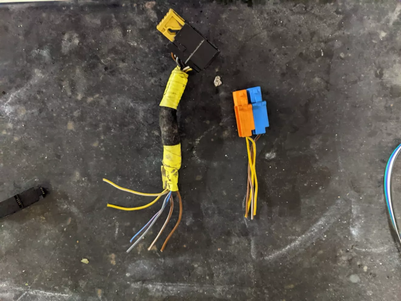 Соорудил то что нужно было поставить обратно, провода на старые разьёмы подушки и сигнала совпадают по цветовой палитре, остальные 2 это провода управления кнопками мултимедии (Это пока что буду делать позже)
