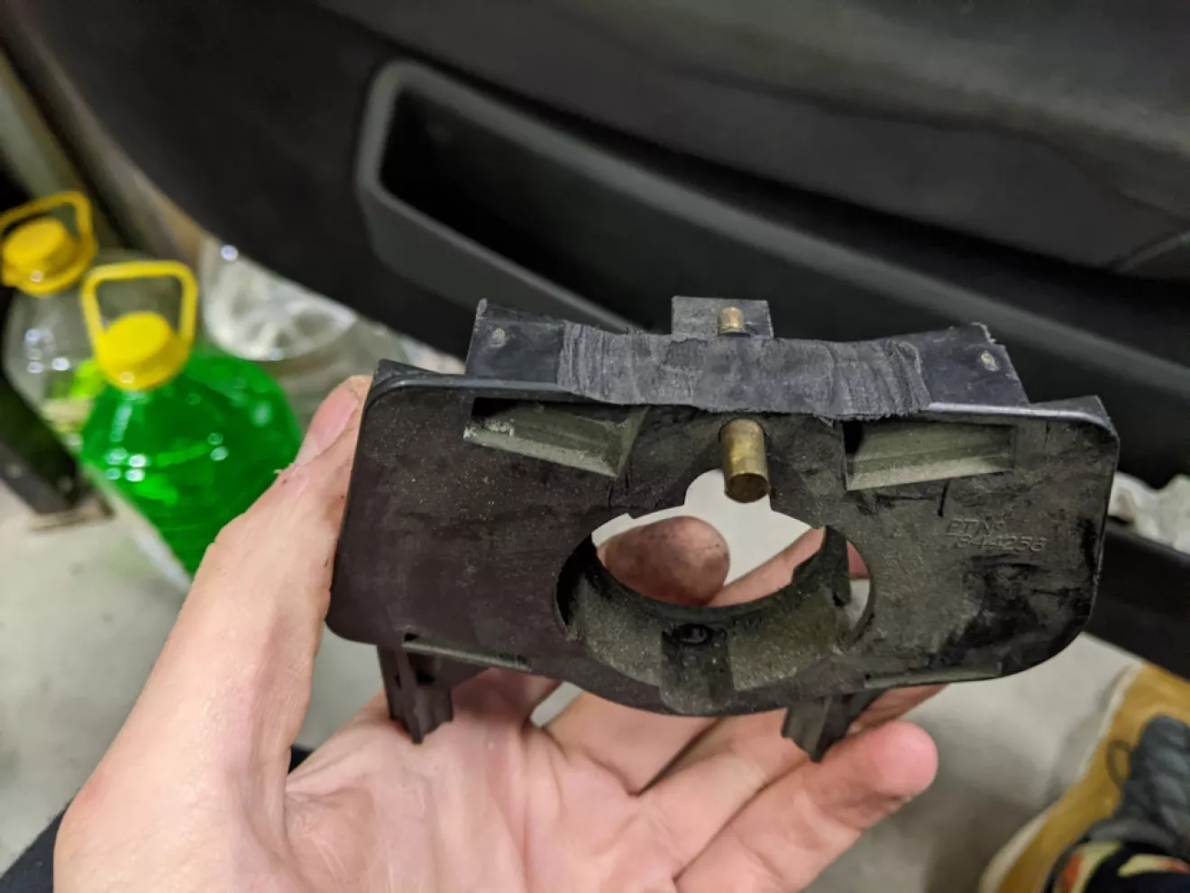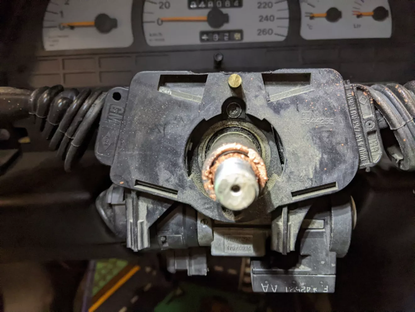 Потом идём к машине и стачиваем сверху милиметра 2 от самого крепления на колонке, для удобства его можно снять, это что новый разьём не толкало на вверх