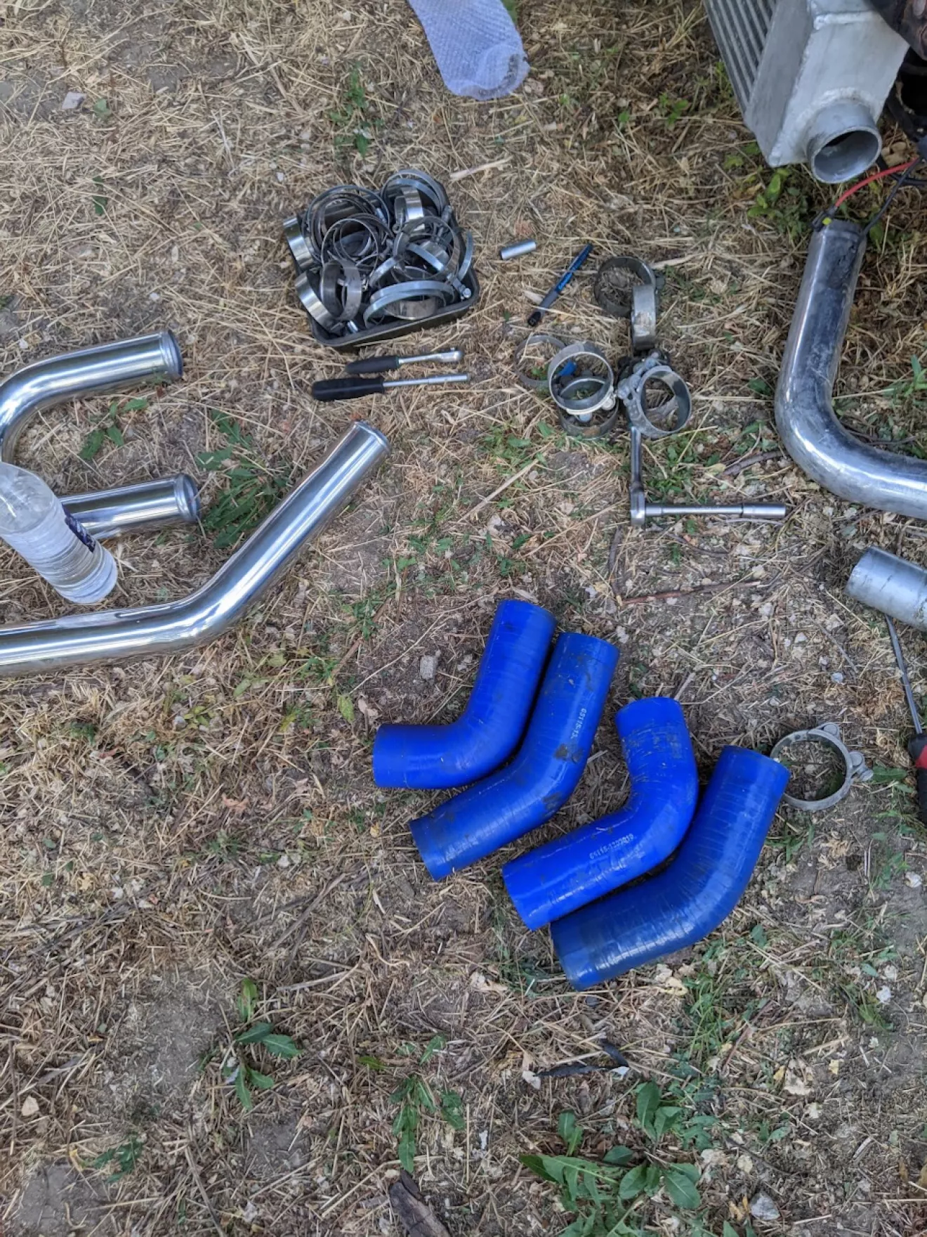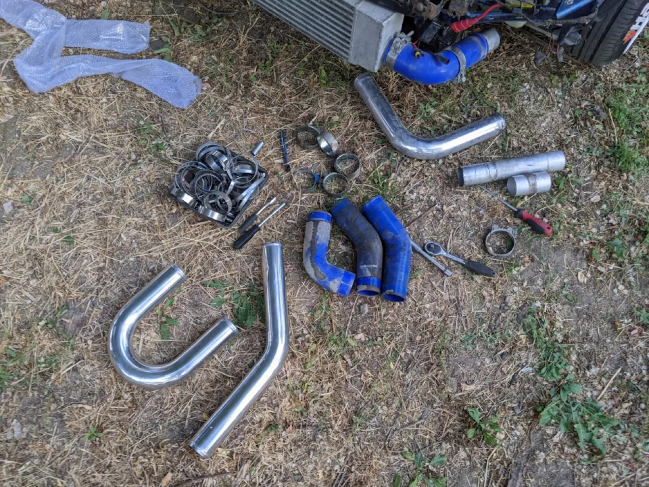 Изначально на моей Кале были силиконовые пайпы по всей длине впуска, и со временем из за мягкости конструкции они протирались обо что было ближе в подкапотке, меня это и настараживало и не давало покоя то что от наддува они то сплющиваются то раздуваются. Так как у меня уже был комплект алюминьевых пайпов полученных с машиной решил по быстрому отмерить нужные мне куски и укоротить чуток силиконы.