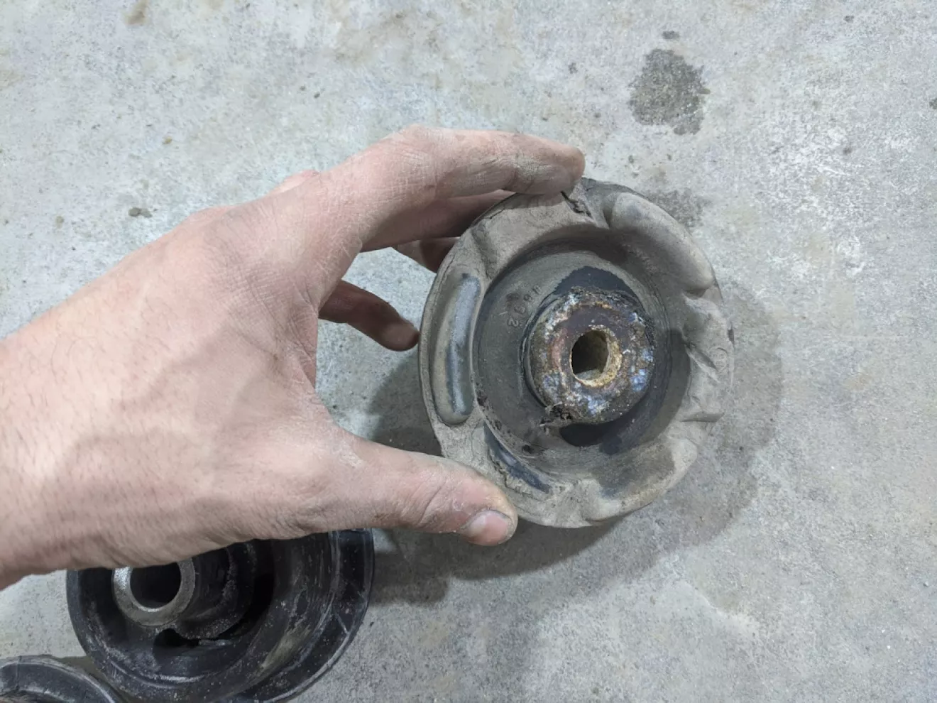 Решил заменить патиссоны ещё оставшиеся от прошлого владельца, сделал всё за минут 40, очень легко всё меняется, даже в домашних условиях можно всё сделать, поднял машину на опоры и домкратом прижал задний рычаг к кузову, потом откручиваем 1 болт на 18 и 2 других на 15 с крепления держащее рычаг.