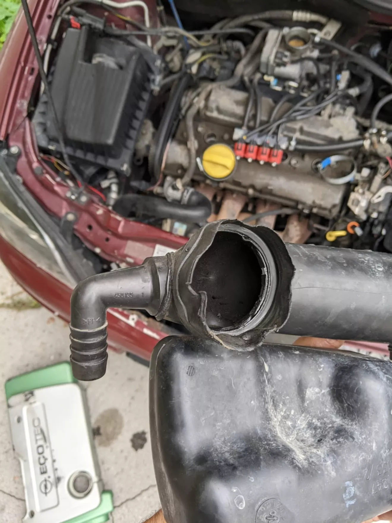 Проблема в том что основа края патрубка которая надевается на заслонку сделана из каучука, и при воздействии на него масла оно быстро разьедается, а так как на этих моторах пробеги большие и есть небольшой жор масла которого гонит через сапун то эта основа разьедается очень быстро и приходит в негодность — то что произошло и у меня.