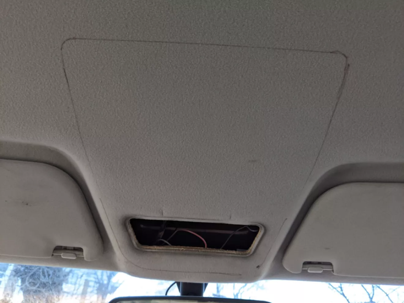 Снял плафон и металлическую рамку, вставил сам кармашек на свое место и прошёлся карандашом по периметру чтоб знать примерный его размер — так сказать не промазать с отрезанием.
