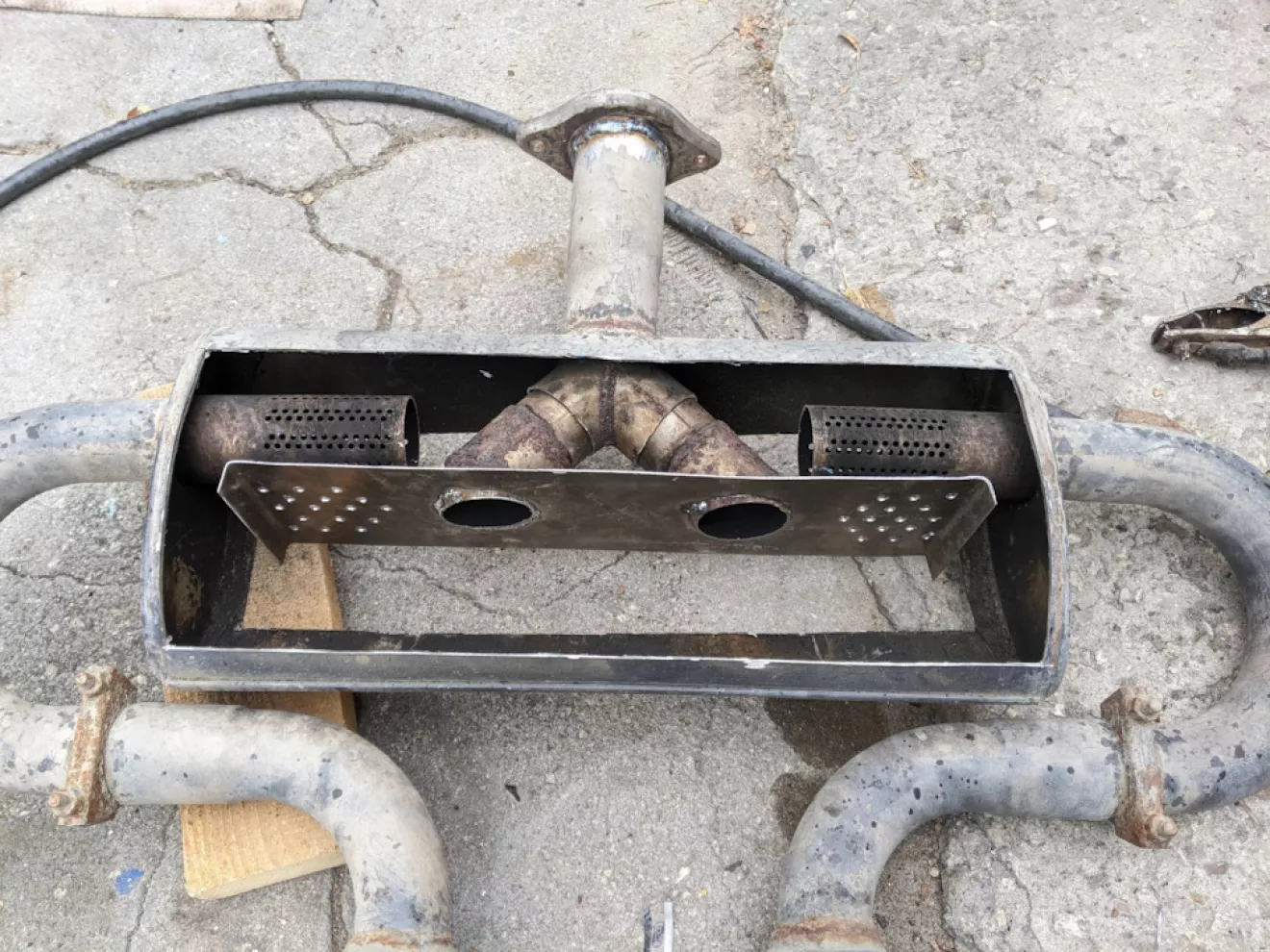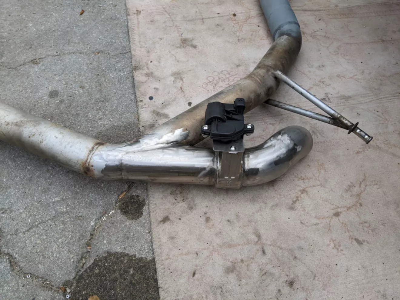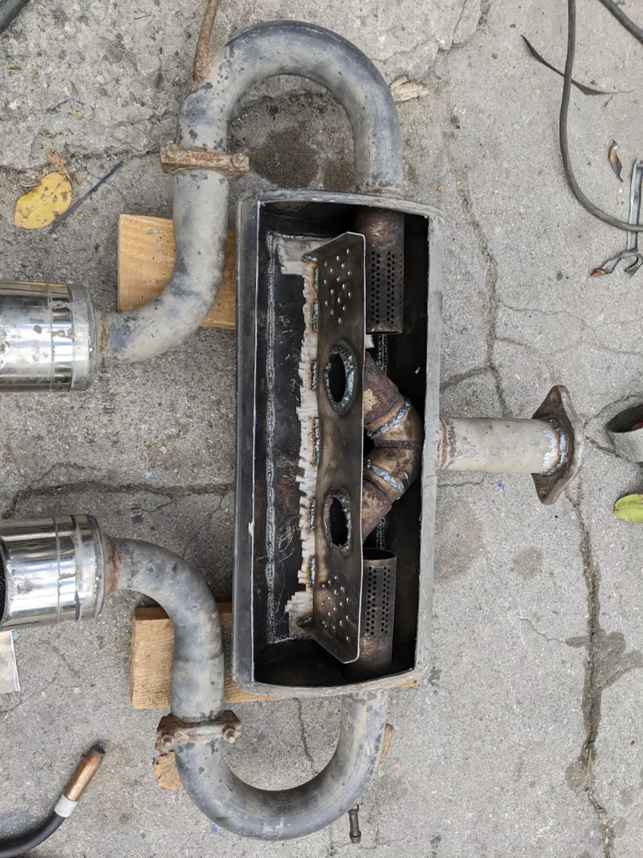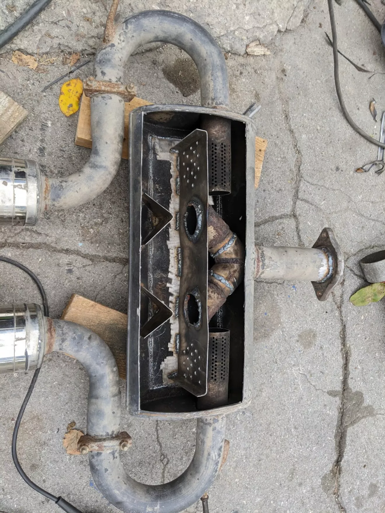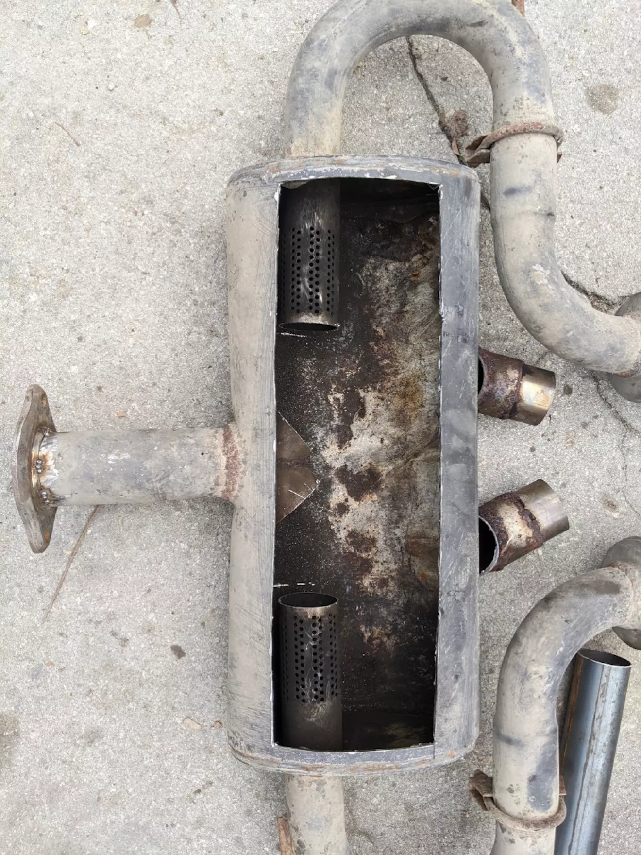Было решено сделать банку чуть тише и добавить заслонку после резонатора, чтоб можно было выбирать между режимами езды, задача была именно сделать машину тише потому что часто по Европе катается — а там за это сразу отбирают доки. Короче говоря первым делом увидел что сифонит у стыка банки с выхлопной, решил убрать этот стык и заварить 2 соединительних фланца по ближе к подрамнику.