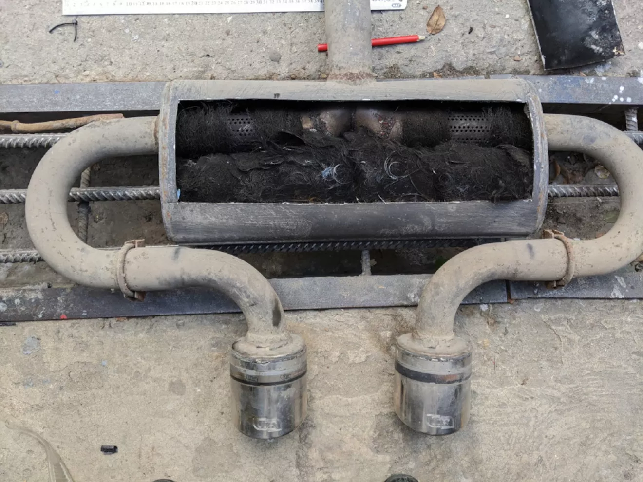 К сожелению у нас не нашёл норм набивок для выхлопных систем и решил набить туда старую набивку и по курсу потока газов набить сварочную проволку, по отзывам вроде самый хороший бюджетный вариант