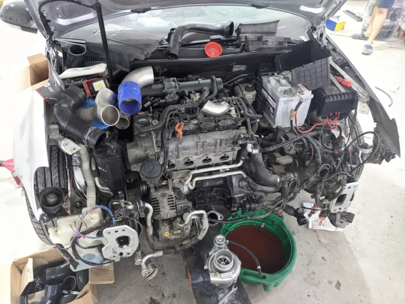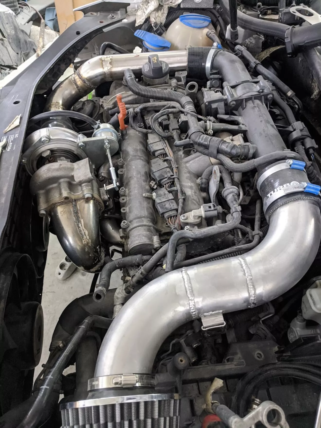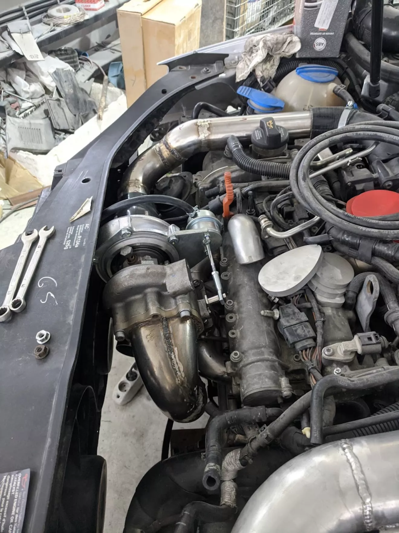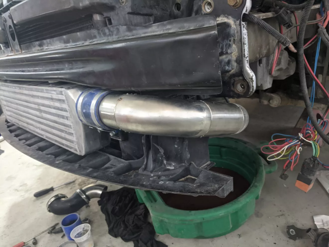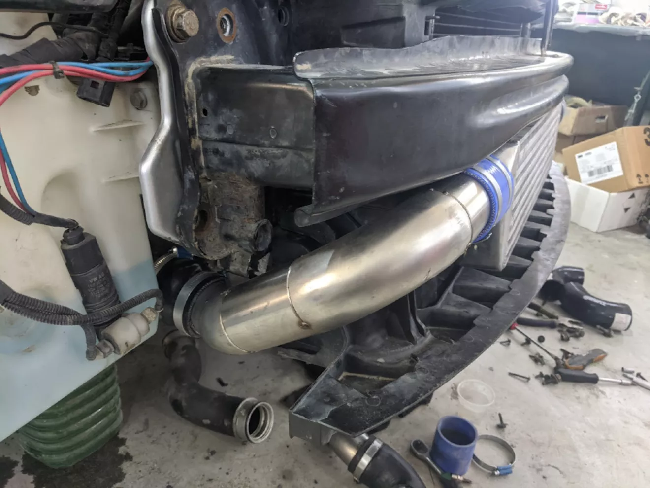 Сток интеркулер так-же был снят, передвинули радиатор макимально вперёд, места стало просто куча, рекомендую такой апгрейд, после этого можно уже всякие плюшки внедрять )
