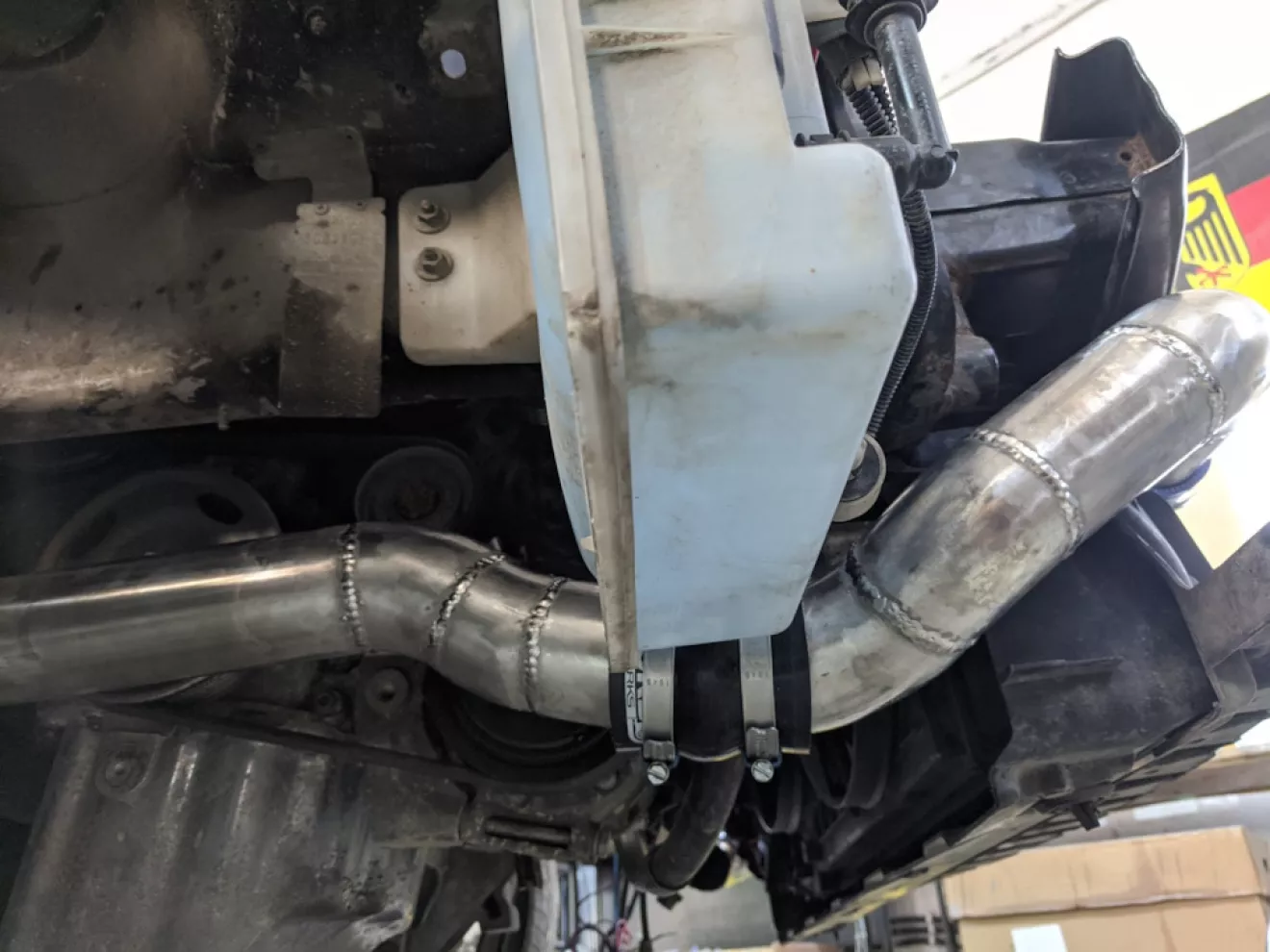 Переделали усилитель, крепёж пока только сверху, дальше начили готовить впуск под 60 трубу, всё нержавейка.