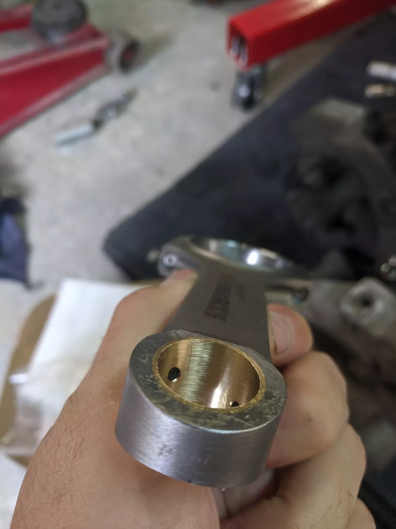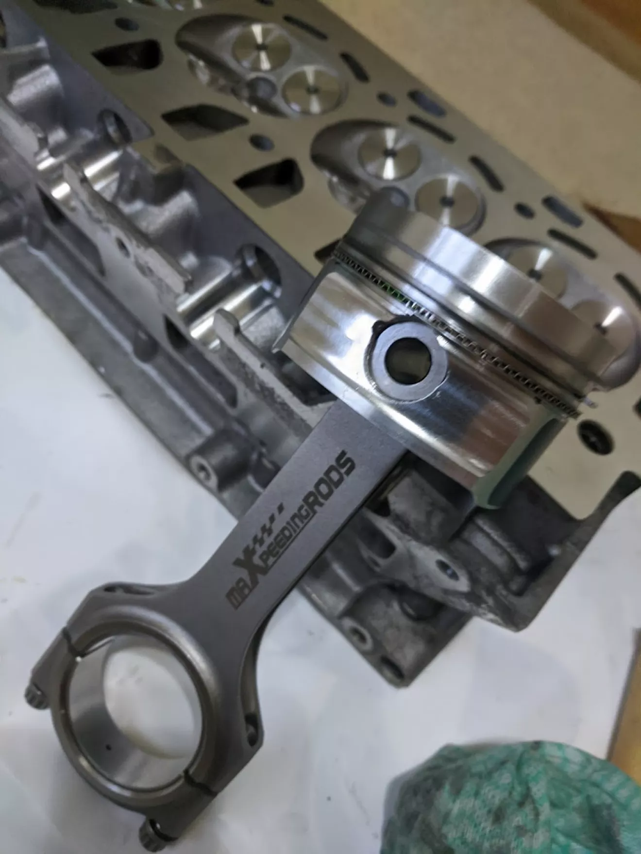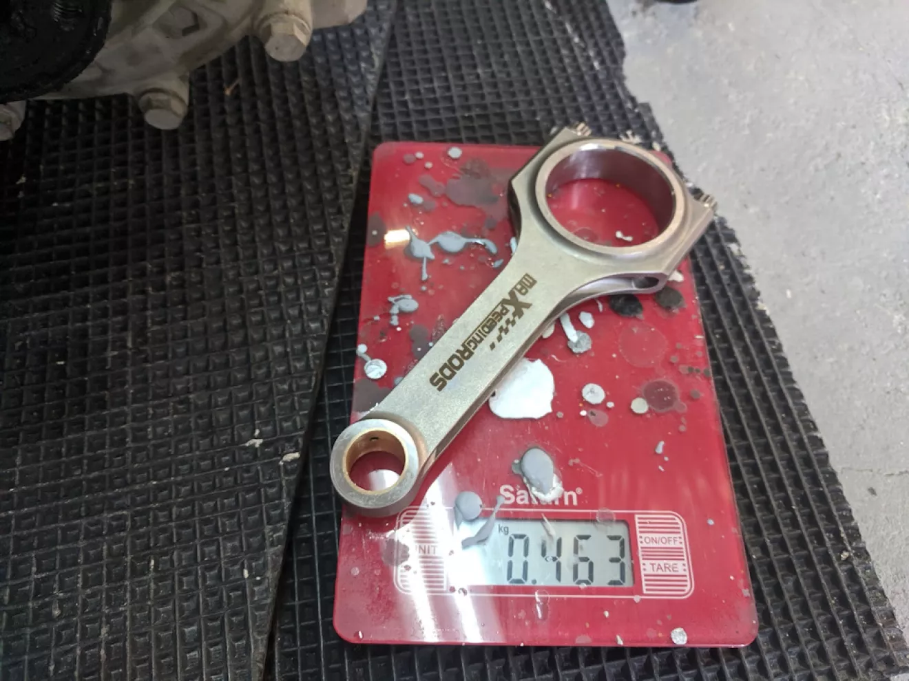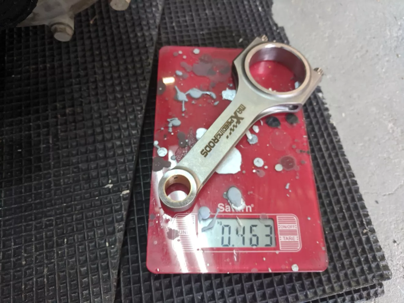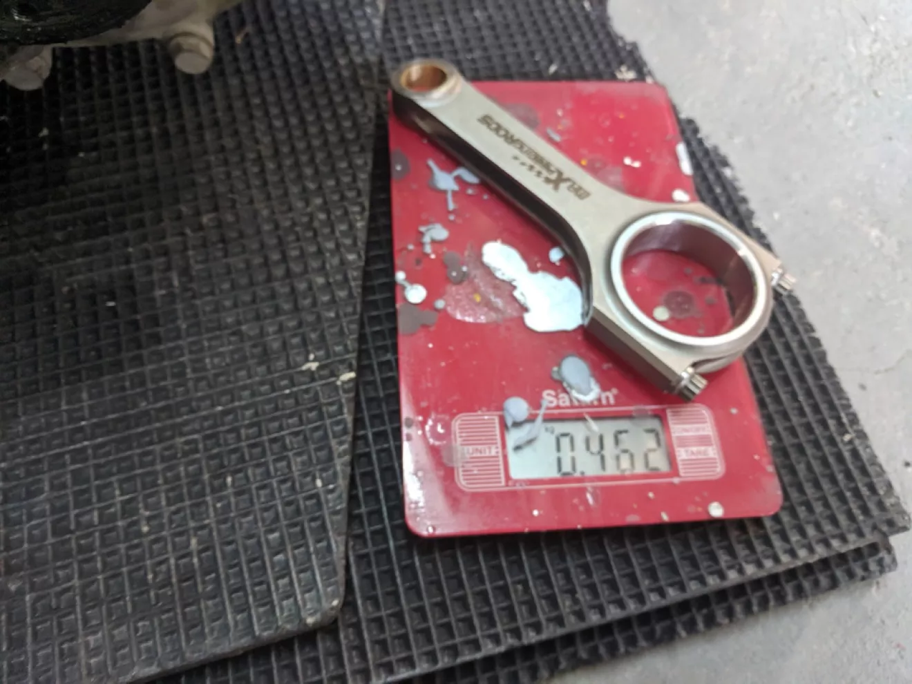Только один шатун минус 1 грамм, остальные все одинакого равны, тот же 1 грамм я компенсировал пальцем который ровно на 1 грамм был тяжелее других 3 — таким образом я получил сбалансированный низ.