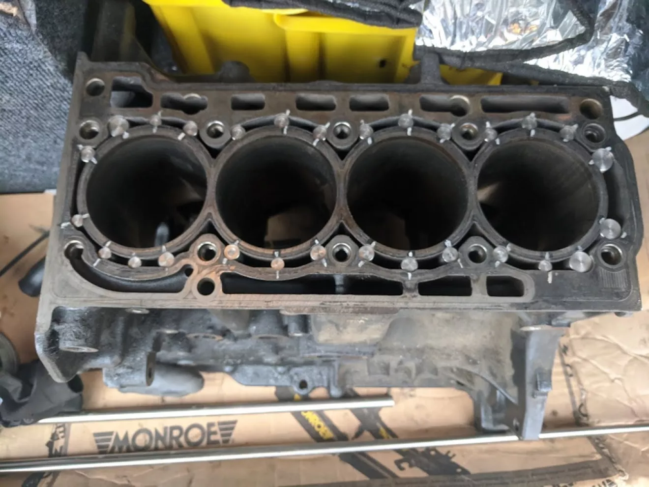 Блок же решили штифтовать, тяжело было найти специалиста токаря который бы сделал это, всё делается на координатном станке на определенной глубние 15-20мм с использованием нержавеющих прутков разных диаметров, и с очень большой окуратностью. Слабые места были намечены заранее дабы облегчить процесс.